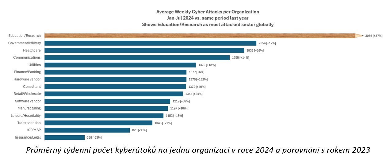 Školy a vzdělávací instituce pracují s obrovským množstvím citlivých dat, přitom ale v řadě případů nemají odpovídající zabezpečení. Stávají se tak pro kyberzločince snadným a oblíbeným cílem. Z nejnovější zprávy společnosti Check Point vyplývá, že v roce 2024 je nejčastějším terčem hackerů právě sektor vzdělávání. Každá vzdělávací a výzkumná instituce čelí v průměru 3 086 útokům týdně.