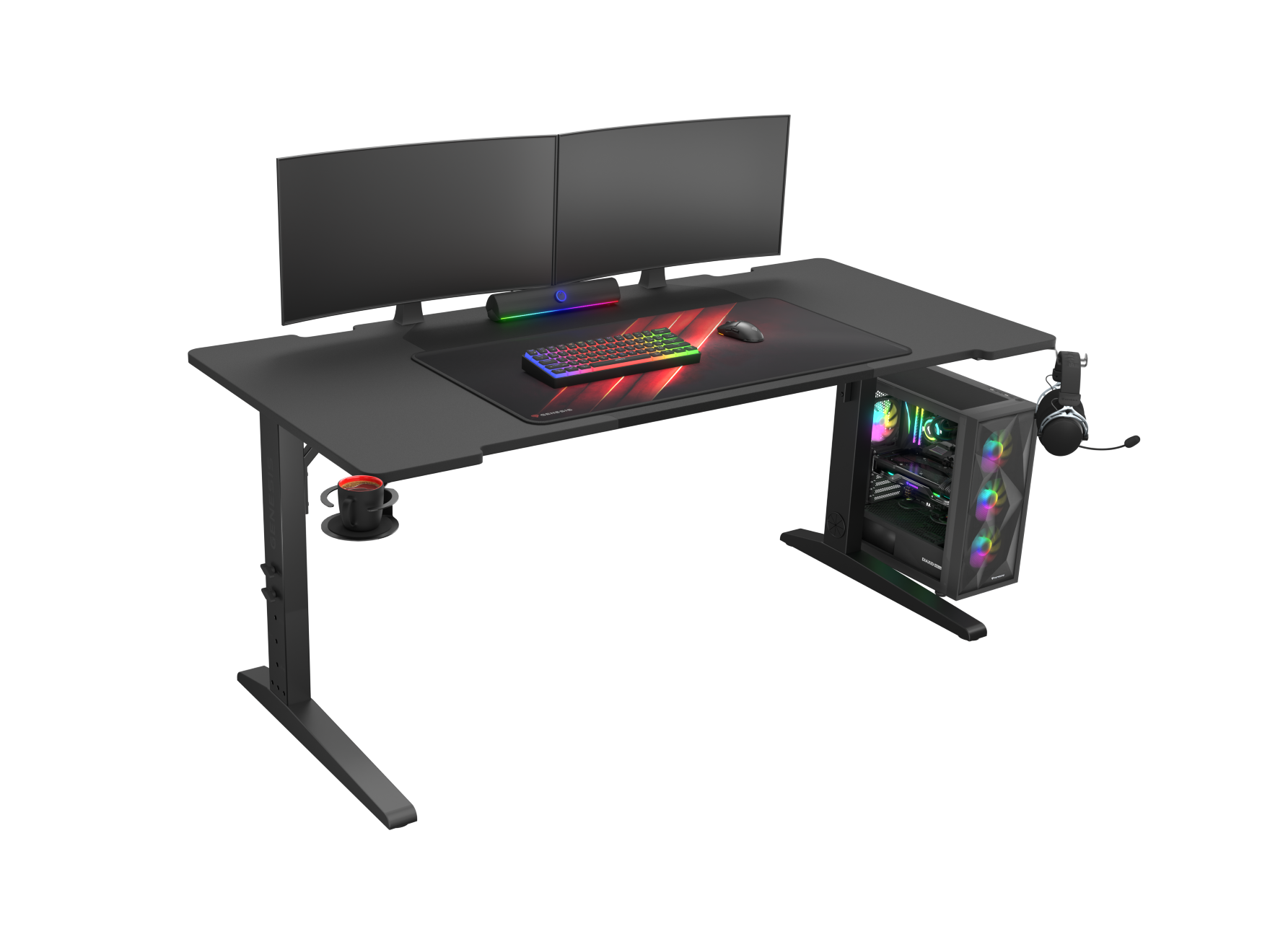 Stůl GENESIS Holm Modular je vybaven řadou funkčních doplňků, jako je držák na nápoje, sluchátka, průchodka na kabely umístěná v rámu, a dokonce i výsuvná police na kabely v rozsahu 50 - 95 cm. Estetickým prvkem je pak také LED pásek. Instalované osvětlení, díky své charakteristické konstrukci, lépe rozptyluje světlo, a navíc je možné plně nastavit jeho úhel nebo jej zcela odstranit a umístit na jiné místo.