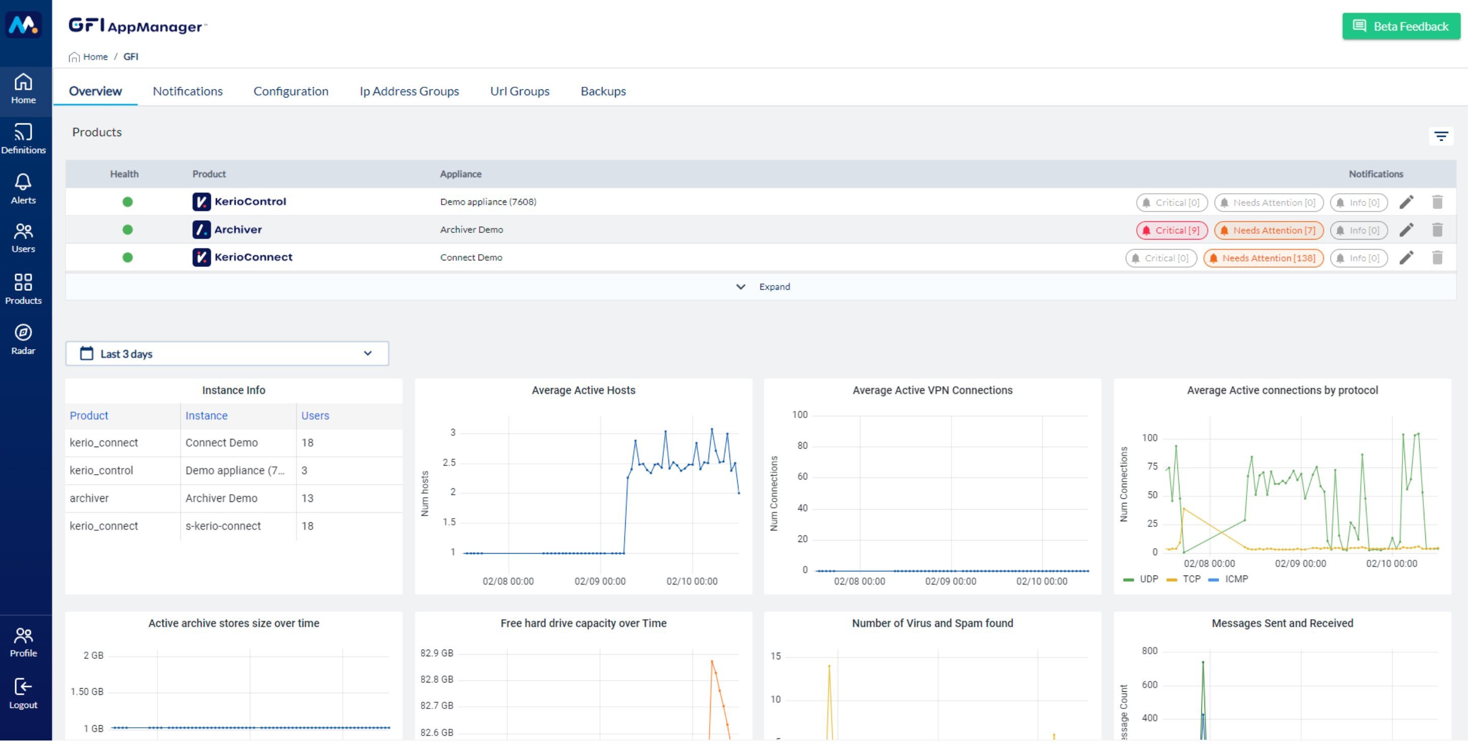GFI AppManager poskytuje podporu různorodým IT řešením, od poštovního serveru přes archivaci až po firewall, a je plně rozšiřitelný o jednoduché API rozhraní pro podporu dalších řešení.