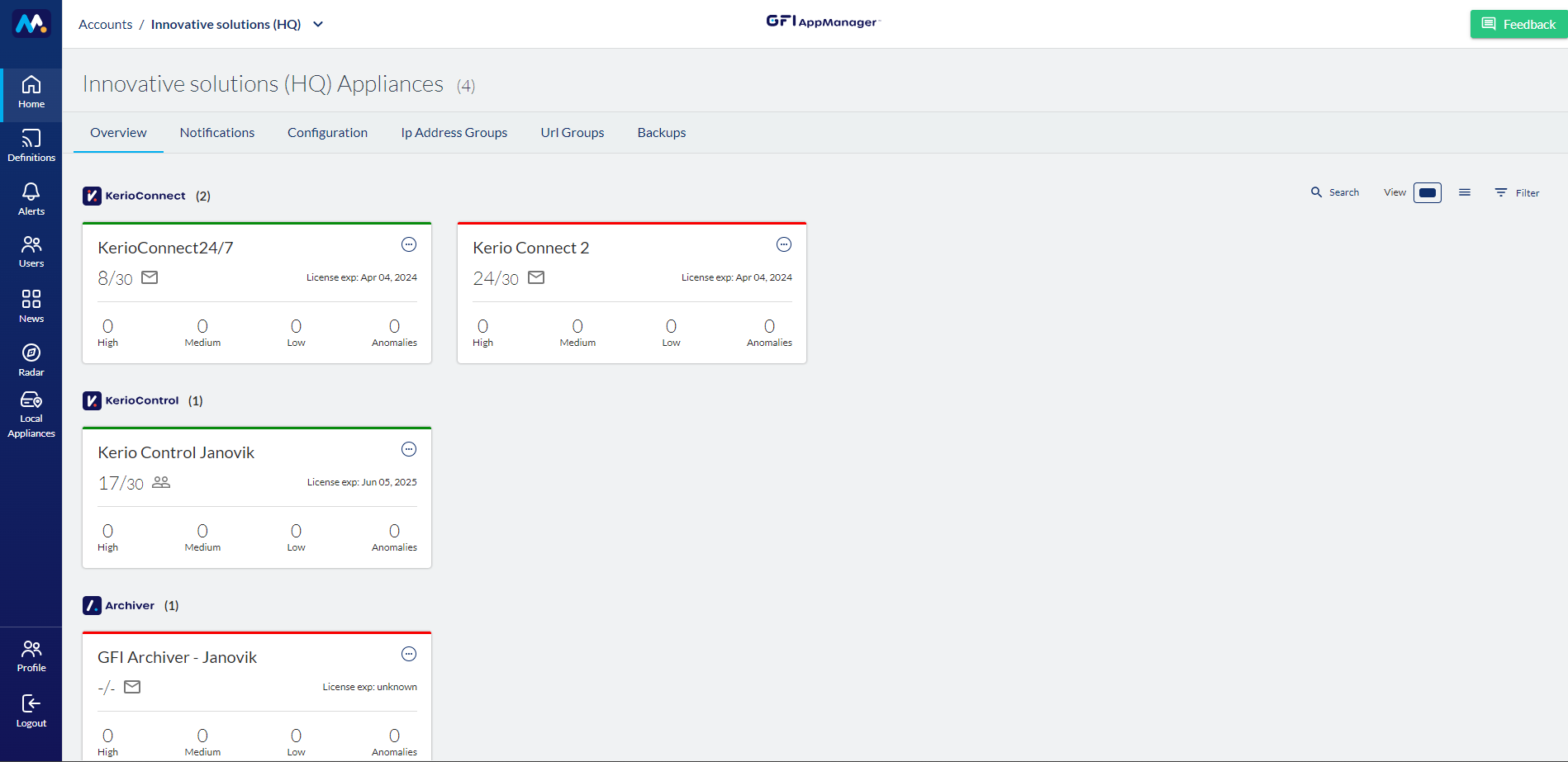 „Jsme rádi, že jsme původní ambiciózní nápad GFI AppManager dokázali proměnit ve skutečnost a že naši partneři mohou nyní významně zefektivnit správu svých či zákaznických IT,“ řekl Jozef Kačala, vicepresident of global sales engineering ve společnosti GFI Software. „Aktuálně dostupná verze přináší resellerům a MSP partnerům GFI Software možnost snáze zvládnout všechny požadavky svých stávajících zákazníků a rozšířit své podnikání o nové zákazníky a služby.“
