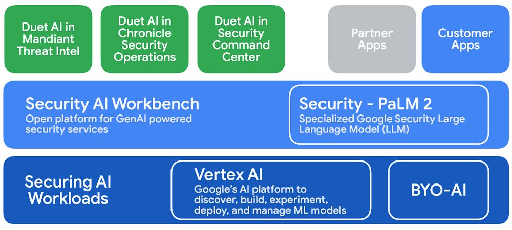 Duet AI je nyní integrován do bezpečnostních produktů společnosti Google jako Chronicle Security Operations, Mandiant Threat Intelligence a Security Command Center. Služba může pomáhat při programování (třeba jako druhý kodér) a pomáhat uživatelům s kontextovým doplňováním kódu, nabízet návrhy syntaxe vyladěné podle předchozího kódu zákazníka, generovat celé funkce v reálném čase a pomáhat s revizemi a kontrolami kódu. Duet AI dokáže rychle shrnout a klasifikovat informace o hrozbách, překládat vyhledávání v přirozeném jazyce do dotazů a poskytovat návrhy dalších kroků k nápravě problémů, což může zkrátit dobu detekce a reakce a zvýšit produktivitu přepracovaných bezpečnostních specialistů.