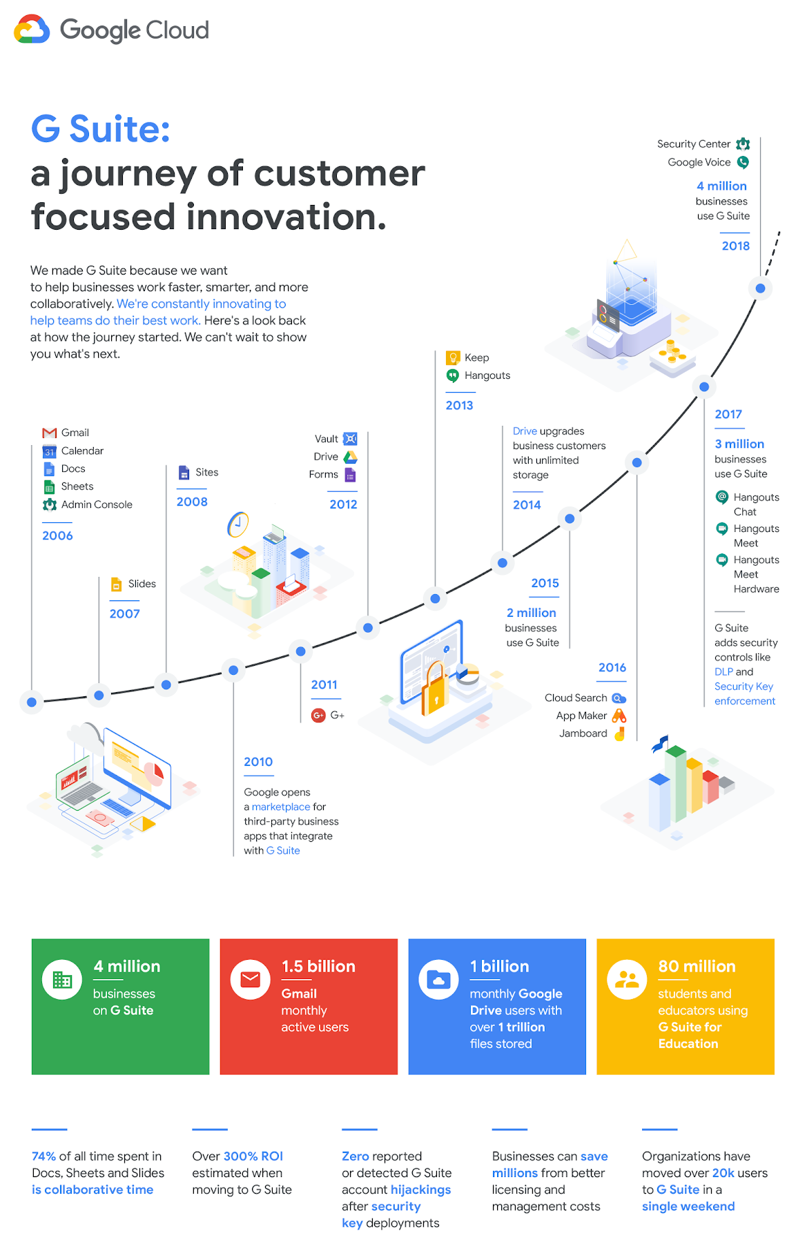 Společnost Google od 2. dubna 2019 zdraží dva základní tarify služby G Suite, která firemním uživatelům přináší služby jako Google Calendar, Gmail, Docs, Drive nebo Hangouts. Zdražení podle Googlu proběhne globálně.