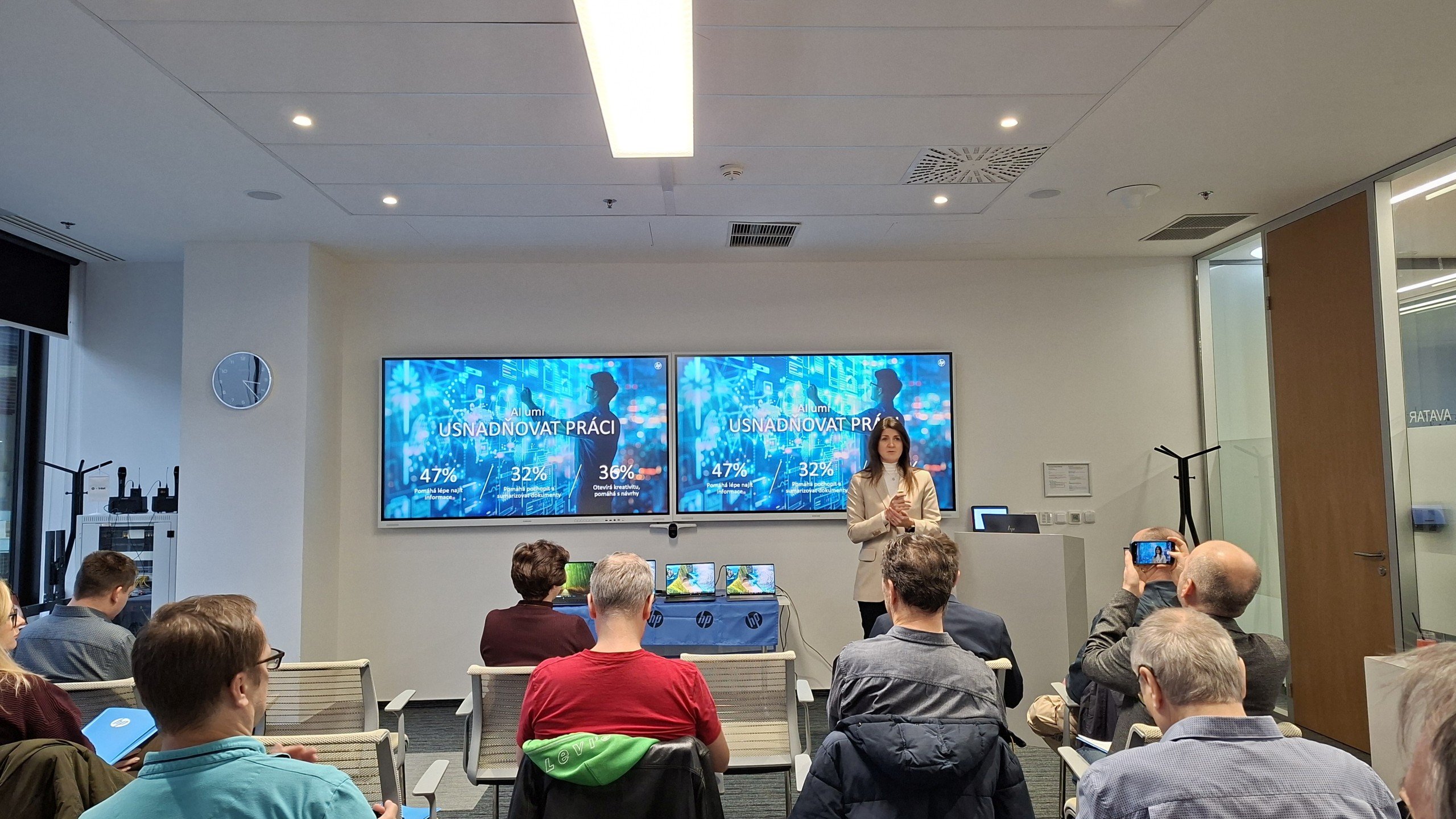 Kateřina Barbier, generální ředitelka HP pro ČR, SR a Maďarsko, v úvodu setkání přiblížila strategii, na základě které společnost ke svému portfoliu produktů a služeb a k jeho rozvoji přistupuje: „Napříč naším celým portfoliem se jednoznačně prolínají trendy, které souvisí s budoucností práce a její moderní podobou. Tato strategie vychází z reálných dat o pracovním trhu, která pravidelně získáváme díky průzkumu HP Work Relationship Index. V reakci na aktuální výzvy nyní přicházíme s řadou produktů a řešení, které podporují produktivitu, usnadňují práci a pomáhají firmám lépe reagovat na potřeby zaměstnanců“.