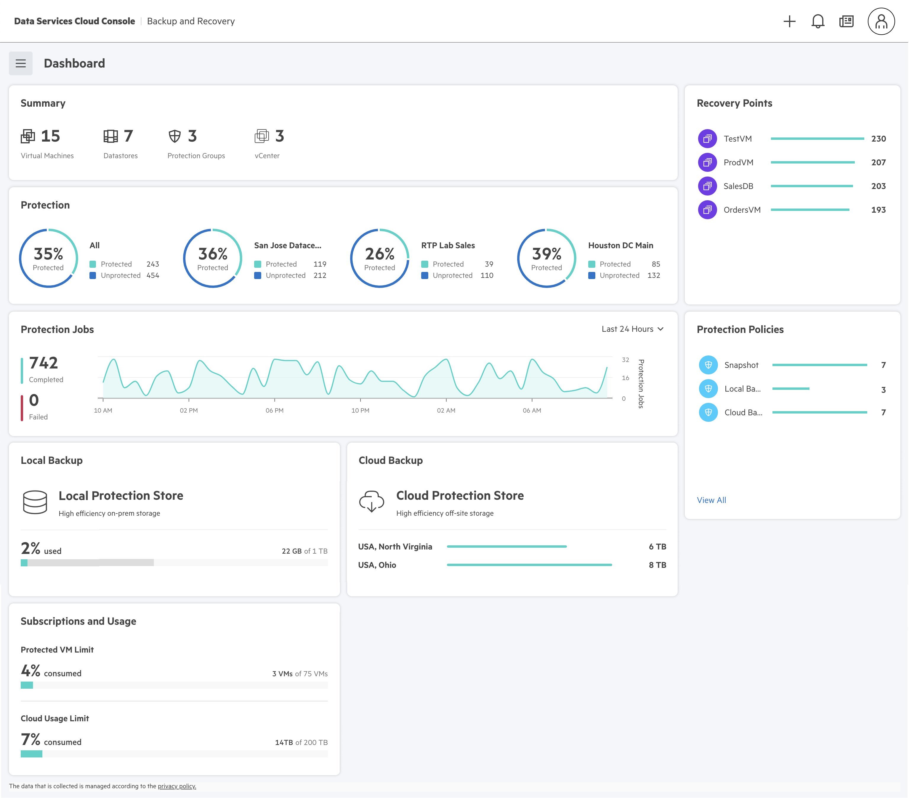 - HPE GreenLake pro Backup and Recovery chrání on-premise cloudové úlohy, a to díky jednotné správě a katalogu dat napříč soukromými a veřejnými cloudovými úlohami. Poskytuje také orchestraci založenou na zásadách, vynikající efektivitu úložiště a fakturaci na základě potřeby poskytované prostřednictvím SaaS modelu.