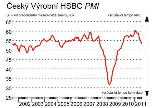 Hlavní Výrobní PMI pro Českou republiku od HSBC je kompozitní jednociferný ukazatel celkového výkonu ve výrobním sektoru. Sleduje změny v objemu nových zakázek, ve výrobě, zaměstnanosti, výkonnosti dodavatelů a skladových zásobách. Hodnoty nad 50 bodů poukazují na všeobecné zlepšení podnikatelských podmínek.