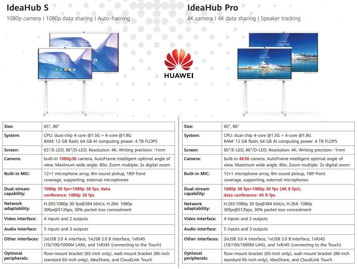 V nabídce DNS jsou aktuálně k dispozici dvě produktové rodiny Huawei IdeaHub: IdeaHub Pro a IdeaHub S.