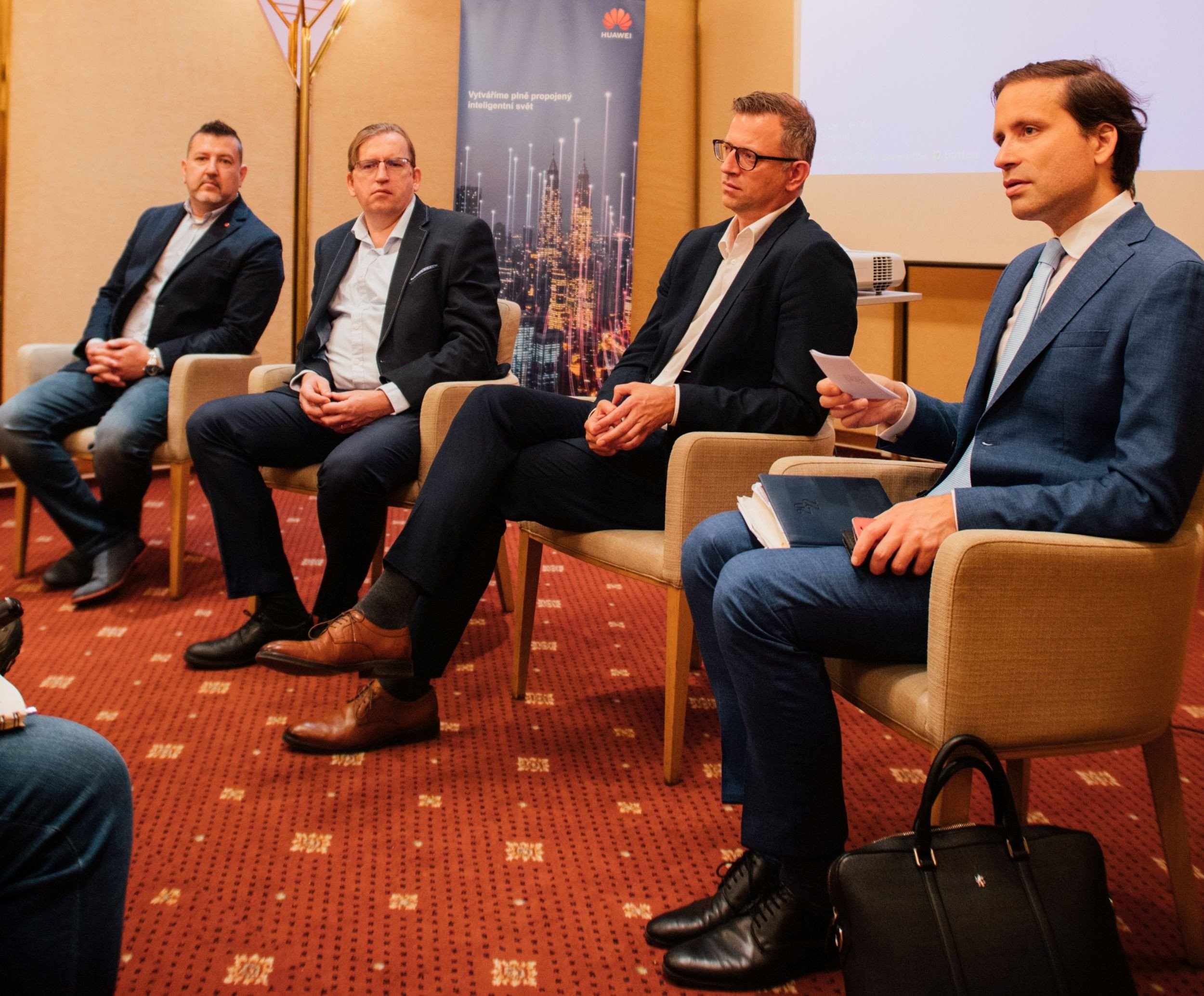 Kamil Anis – Solution Architect v Huawei Technologies, Tomáš Prokopík – Head of CTO Strategy Office v O2, Jan Burian – Research director for Manufacturing Insights v IDC a Lukáš Kovanda – Hlavní ekonom Trinity Bank.