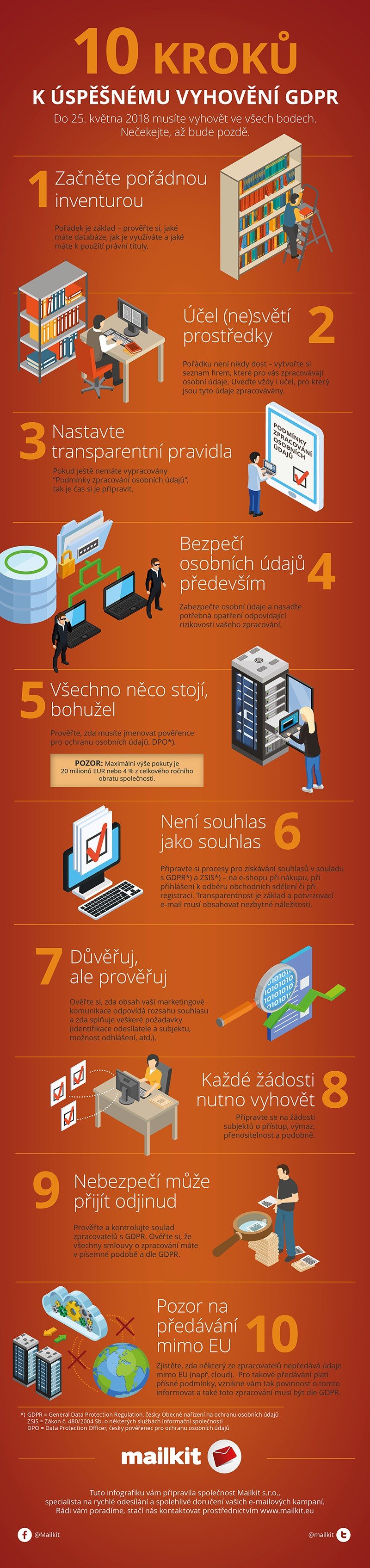 Do 25. května 2018 musí všechny společnosti z e-commerce sektoru splnit podmínky Obecného nařízení o ochraně osobních údajů (GDPR). Pokud vás zajímá, jak na to, může vám napovědět názorná infografika společnosti Mailkit.