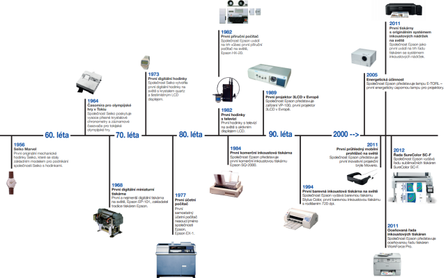 Společnost Epson slaví padesát let od chvíle, kdy na olympijských hrách v Tokiu v roce 1964 poprvé představila miniaturizovaný tisk. Tisk časomíry se stal prvním elektronickým záznamovým systémem na olympijských hrách, který změnil běh dějin. O dvacet pět let později způsobila technologie Epson 3LCD revoluci na trhu projektorů.