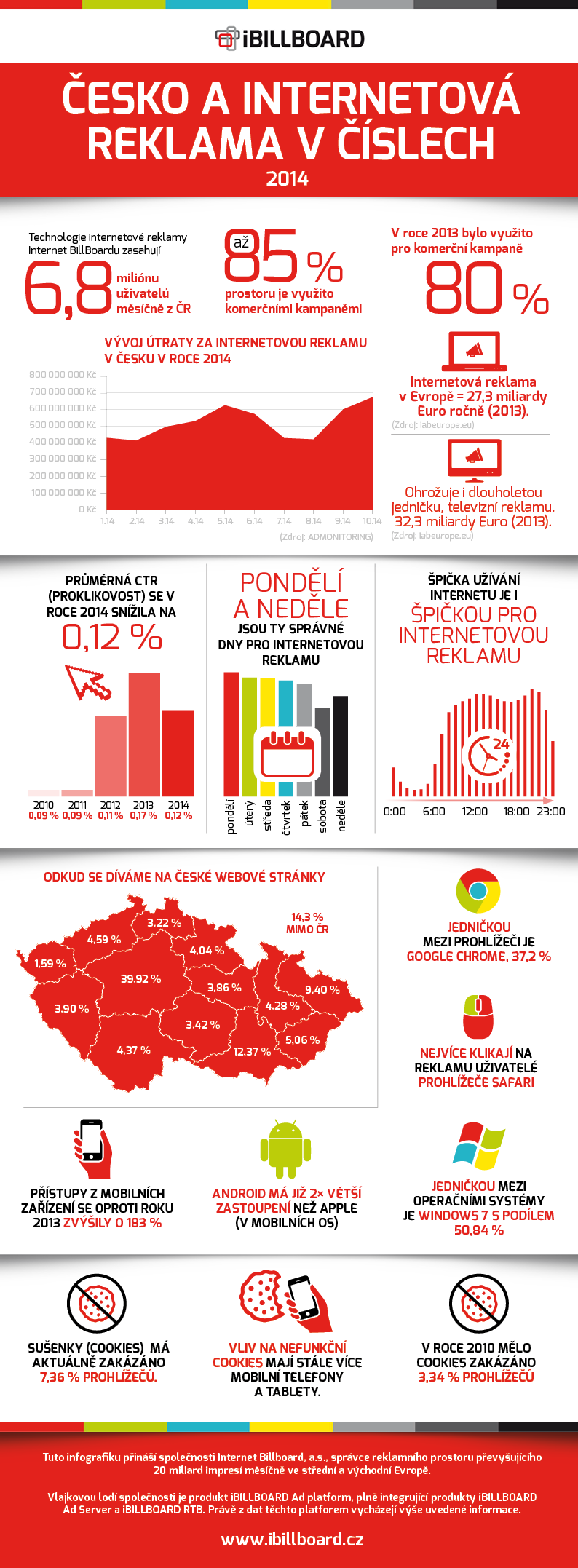 Podle společnosti Internet Billboard průměrné CTR (Click Through Rate, proklikovost) komerčních reklam se letos výrazně snížilo na 0,12 % (oproti roku 2013, kdy bylo 0,17 %).