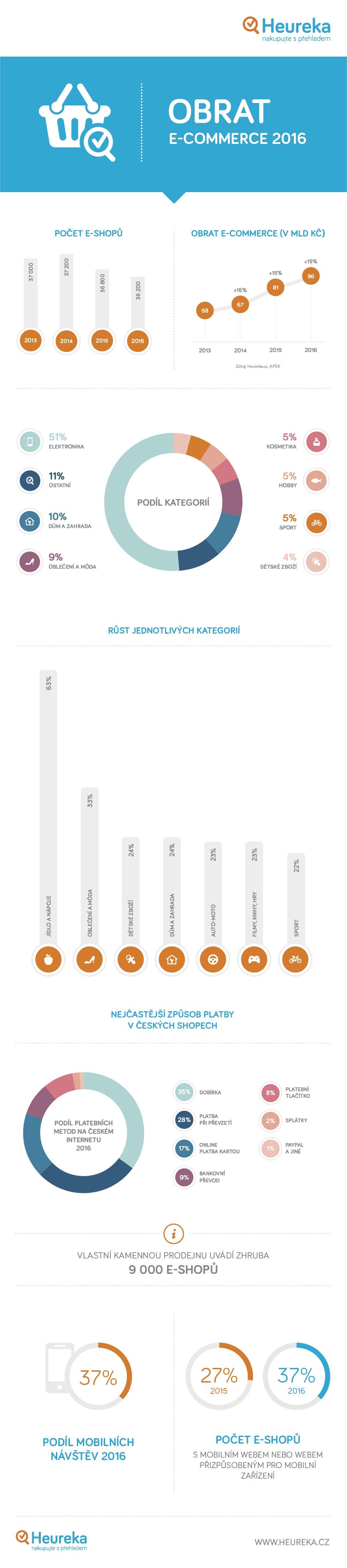 I přes stále silný podíl elektroniky se celý loňský rok nesl v duchu rostoucího zájmu o online nakupování potravin a oblečení. Tyto segmenty zaznamenaly meziročně nárůst 63, respektive 33 %. „E-shopy svůj zákaznický servis šperkují na maximum – doručení v ten samý den, možnost osobního odběru v kamenných prodejnách, prodloužené lhůty na vrácení zboží a další a další kroky vstříc zákazníkovi – to vše nahrává tomu, že český zákazník stále častěji zkouší nákup online – i u zboží, které ještě před nedávnem bylo spíše specifikem kamenného prodej,“ vysvětlil Tomáš Braverman, ředitel nákupního portálu Heureka.cz. Kromě těchto (potraviny a oblečení) dvou segmentů však významně rostly i jiné kategorie – dětské zboží vzrostlo meziročně o 24 %, stejně jako vybavení pro dům a zahradu. O 23 % vzrostl meziročně zájem o nákup zboží v kategorii filmy, knihy a hry.