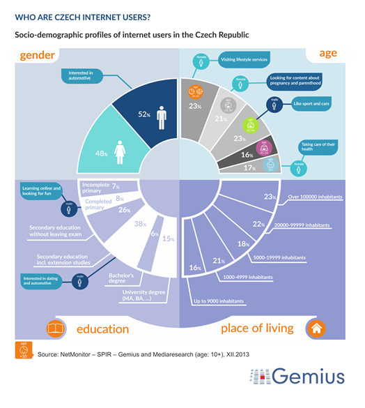 Zatímco v Polsku a Maďarsku vyhledávají uživatelé především weby spojené se zábavou (rádia, televize), v ČR a na Slovensku se zajímají spíše o prakticky zaměřené webové stránky, jako například databáze, mapy či jízdní řády. Svoji dominantní roli na trhu potvrdila společnost Seznam. „Šestz deseti nejnavštěvovanějších webových stránek měřených výzkumem patřídojejího portfolia. V posledních dvou letech prošel český online trh významnou konsolidací – událo se velké množství akvizic a změn ve vlastnictví mediálních domů. V důsledku toho vzniklo několik silných mediálních skupin, nicméně hegemon zůstává“, řekl Josef Richtr, research manager společnosti Gemius.