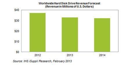 Podle výzkumné společnosti iSuppli nemají pevné disky v příštích letech na růžích ustláno. Jejich prodeje v tomto roce a dalších letech budou klesat pod tlakem chytrých telefonů, tabletů a SSD úložišť. Letos by se měly celosvětové tržby z prodeje HDD propadnout o 12 % z 37,1 miliardy USD v roce 2012 na 32,7 miliardy USD. V roce 2014 se potom očekávají tržby kolem 32 miliard USD.