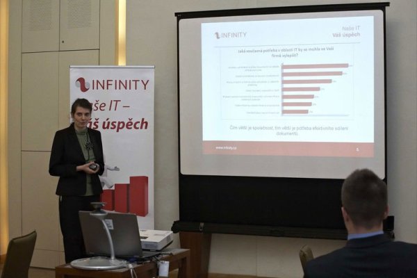 Zajímavé informace přineslo představení nedávno zahájené cloudové kampaně společnosti Infinity a zejména výsledky průzkumu Jak chutná cloud? realizovaného u 128 respondentů malých a středně velkých společností v rámci celé ČR. Jako ochutnávku prozradila marketingová manažerka Infinity Zuzana Parobková, že třeba největší obavu (92 procent) o bezpečnost a svěření svých dat do rukou externí firmy mají společnosti s obratem nad 500 mil. Kč, anebo, že téměř třetina firem by uvítala platit za IT jako službu. Stále ale převažují společnosti, které IT jako službu odmítají. Společným jmenovatelem všech odpovědí tak zůstávají tři premisy: nízká pořizovací cena, důvěra a bezpečnost plus úspora nákladů.