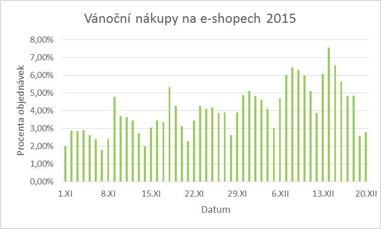 Vánoční nákupy se z velké části přesunuly do online světa a vzhledem k nutnosti dopravy začaly o něco dříve než v kamenných prodejnách. Hlavní špička nastala na začátku prosince a vyvrcholila 14. prosince.