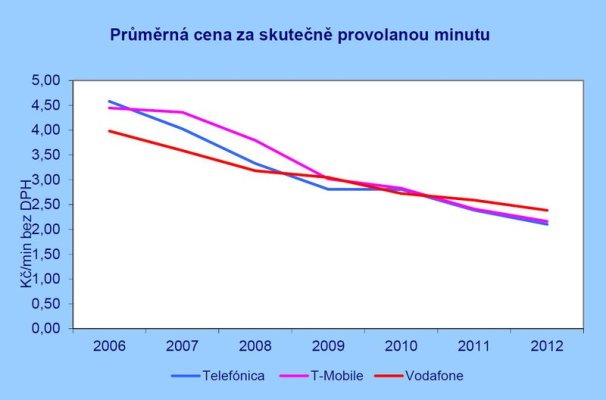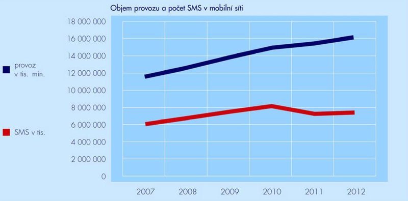 Objem provozu hlasových volání originovaný účastníky mobilních sítí v roce 2012 mírně vzrostl (meziročně o necelých 5 %) a počet odeslaných SMS zpráv z mobilní sítě (bez zahrnutí roamingu) vzrostl o cca 3,5 %. Průměrný originovaný provoz, vyjádřený v reálných minutách volání na jednu aktivní SIM kartu, byl v roce 2012 cca 1 200 reálných minut a počet odeslaných SMS zpráv 550.