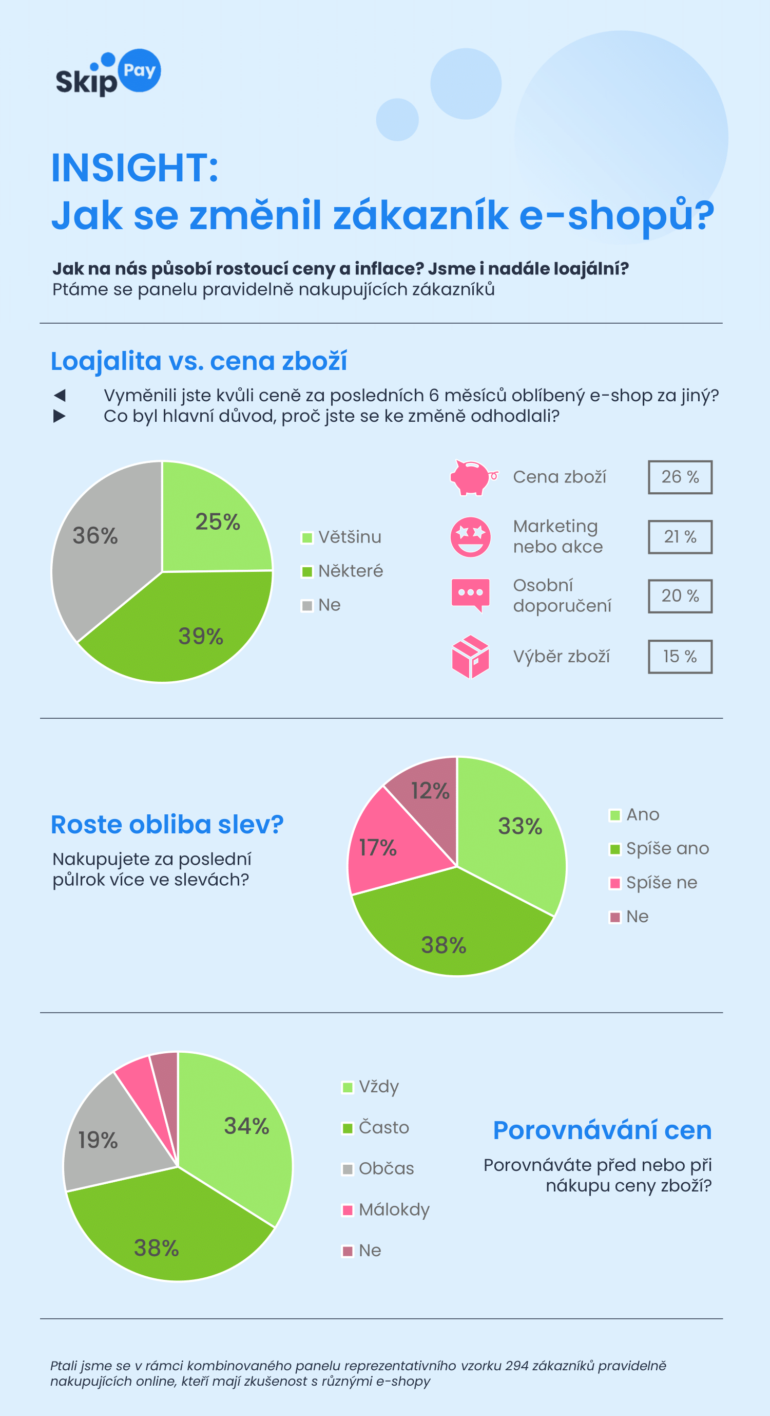 Přestože mezi e-shopy panuje mírný optimismus a po loňském propadu vyhlížejí opět silnou sezonu, v řadách zákazníků to začíná vypadat jinak. Klesá loajalita a zásadním způsobem se mění jejich priority. A utrácet chtějí znatelně méně než v minulých letech. Jak se změnil zákazník před kritickou sezonou mapuje platební služba Skip Pay.