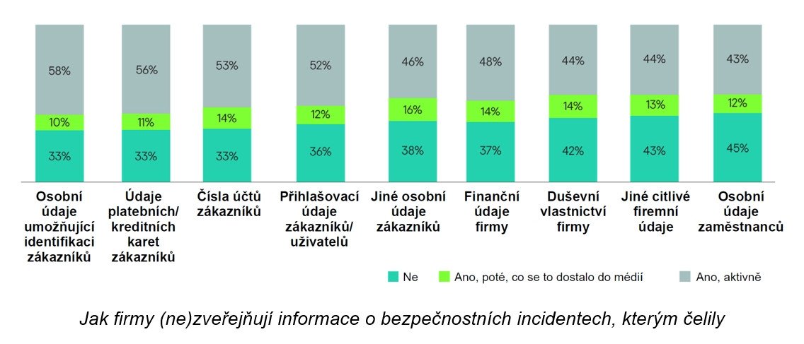 Stále častější případy úniku osobních údajů zaměstnanců při kybernetických útocích na firmy vedou k tomu, že téměř polovina (45 %) takto napadených firem raději informaci o těchto incidentech nezveřejňuje. Podle studie zaměstnanci často postrádají základní vědomosti o zásadách kybernetické bezpečnosti, jež by jim pomohly lépe se před útoky chránit.