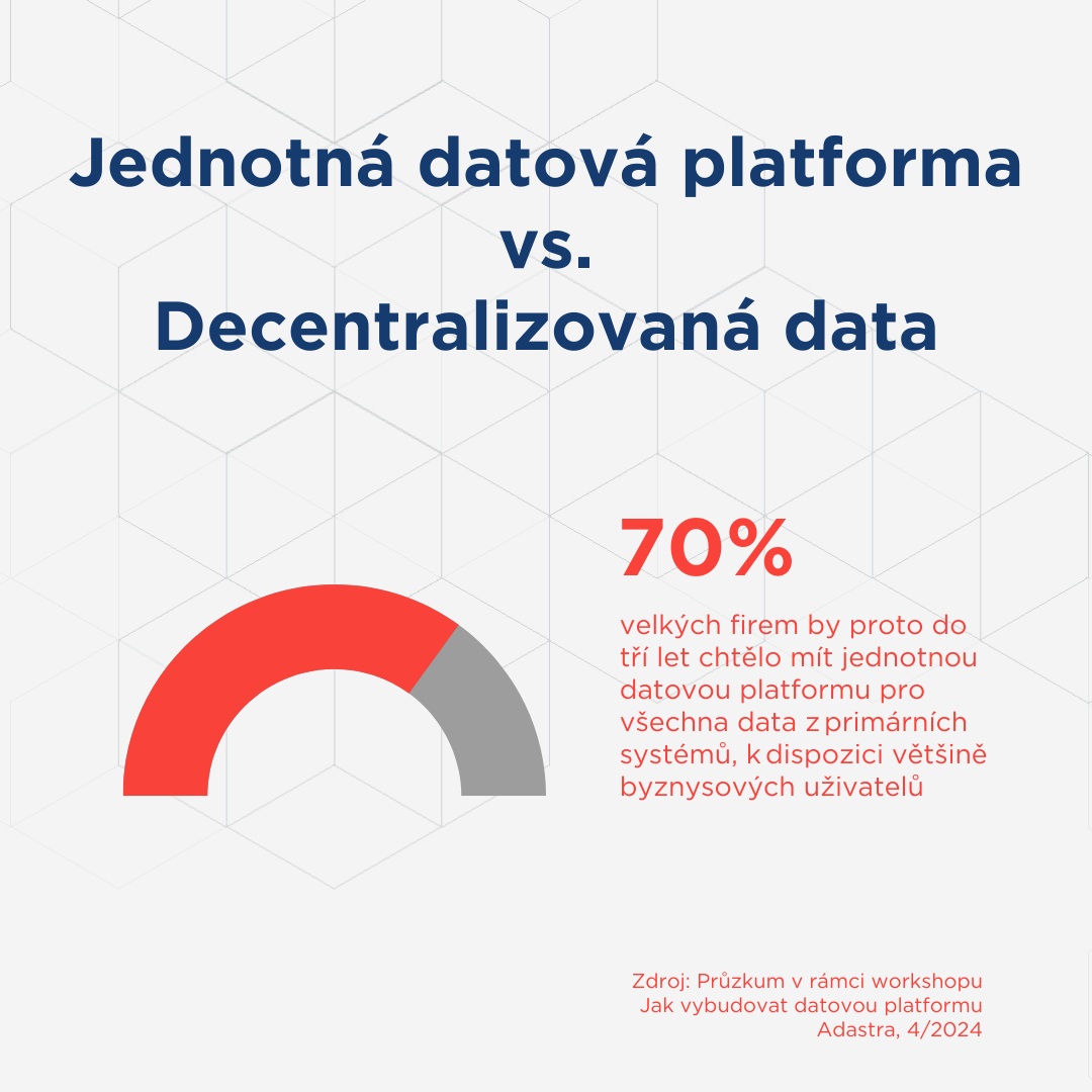 Do tří let by proto 70 % velkých firem chtělo mít jednotnou datovou platformu pro všechna data z primárních systémů tak, aby je měla k dispozici většina byznysových uživatelů.