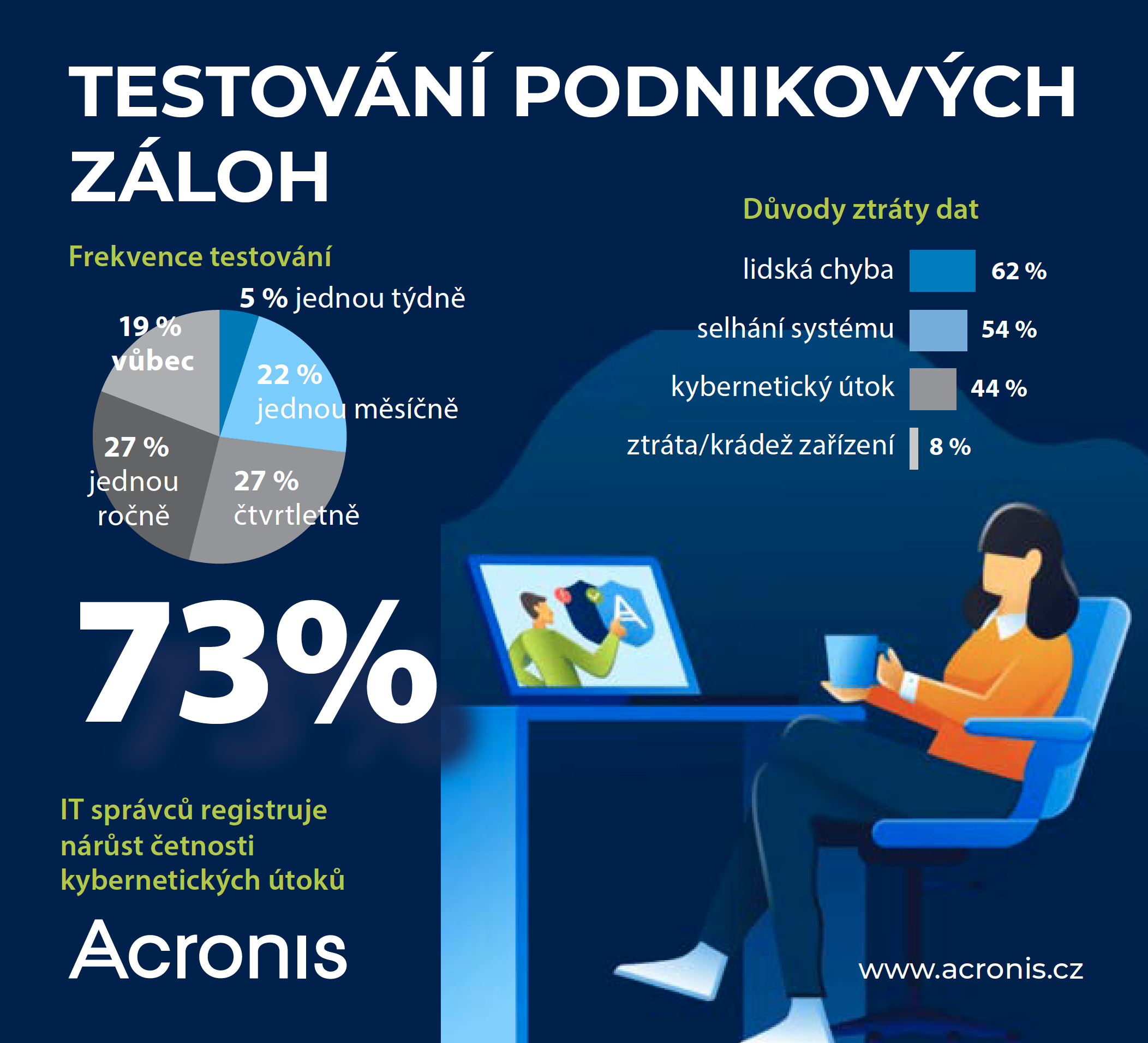 Podle lokálního průzkumu společnosti Acronis jen 27 % IT správců testuje obnovu dat ze zálohy alespoň jednou měsíčně, přestože většina z nich registruje více kybernetických útoků než před rokem.