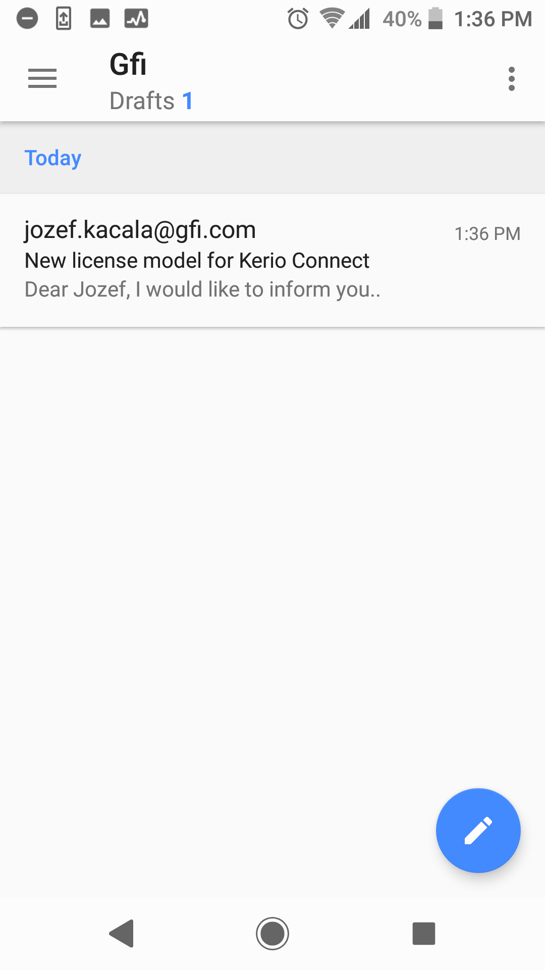 Kerio Connect v aktuální verzi 9.2.7. vylepšuje klientskou část aplikace prostřednictvím implementace podpory Exchange Active Sync verze 16, jež přináší dvě nové funkce pro uživatele, kteří přistupují k poštovnímu serveru Kerio Connect. Pokud má uživatel rozepsaný koncept e-mailu v příslušném adresáři poštovního klienta Microsoft Outlook nebo Kerio Connect Client, má k nim nyní přístup a může je synchronizovat s adresářem ve svém mobilním zařízení. Takže např. dokáže e-mail rozepsaný na PC dokončit a odeslat ze svého mobilu a zároveň synchronizovat s desktopovým klientem.