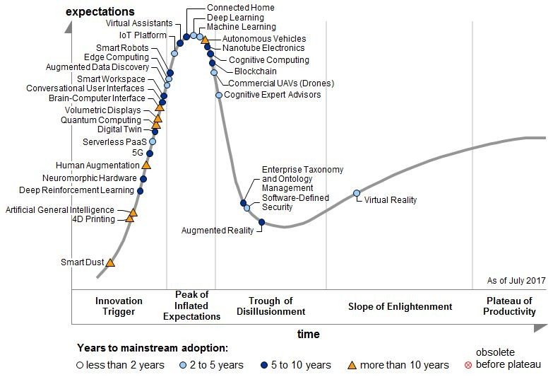 Nově publikovaná křivka rodících se technologií sestavená analytiky společnosti Gartner odhalila tři hlavní trendy, díky nimž podniky v nadcházejících deseti letech úspěšně zvládnou digitální ekonomiku. Jsou to všudypřítomná umělá inteligence, transparentně pohlcující zážitky a digitální platformy.