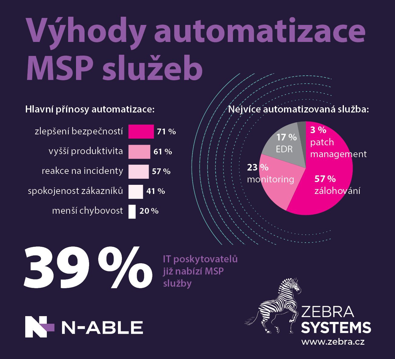 „Setkáváme se se stále větším zájmem našich partnerů o nástroje řízené správy a bezpečnosti, které jim umožňují poskytovat služby více zákazníkům, s lepší profitabilitou a na vyšší úrovní bezpečnosti,“ řekl Ondřej Šabata, Sales Engineer pro řešení N-able ve společnosti Zebra systems. „Dobrou zprávou je, že portfolio řešení N-able kontinuálně posiluje automatizační funkce ve svých nástrojích, a to nejen v oblasti správy a monitorigu, ale aktuálně také například oblasti v patch managementu či ochraně koncových bodů.“
