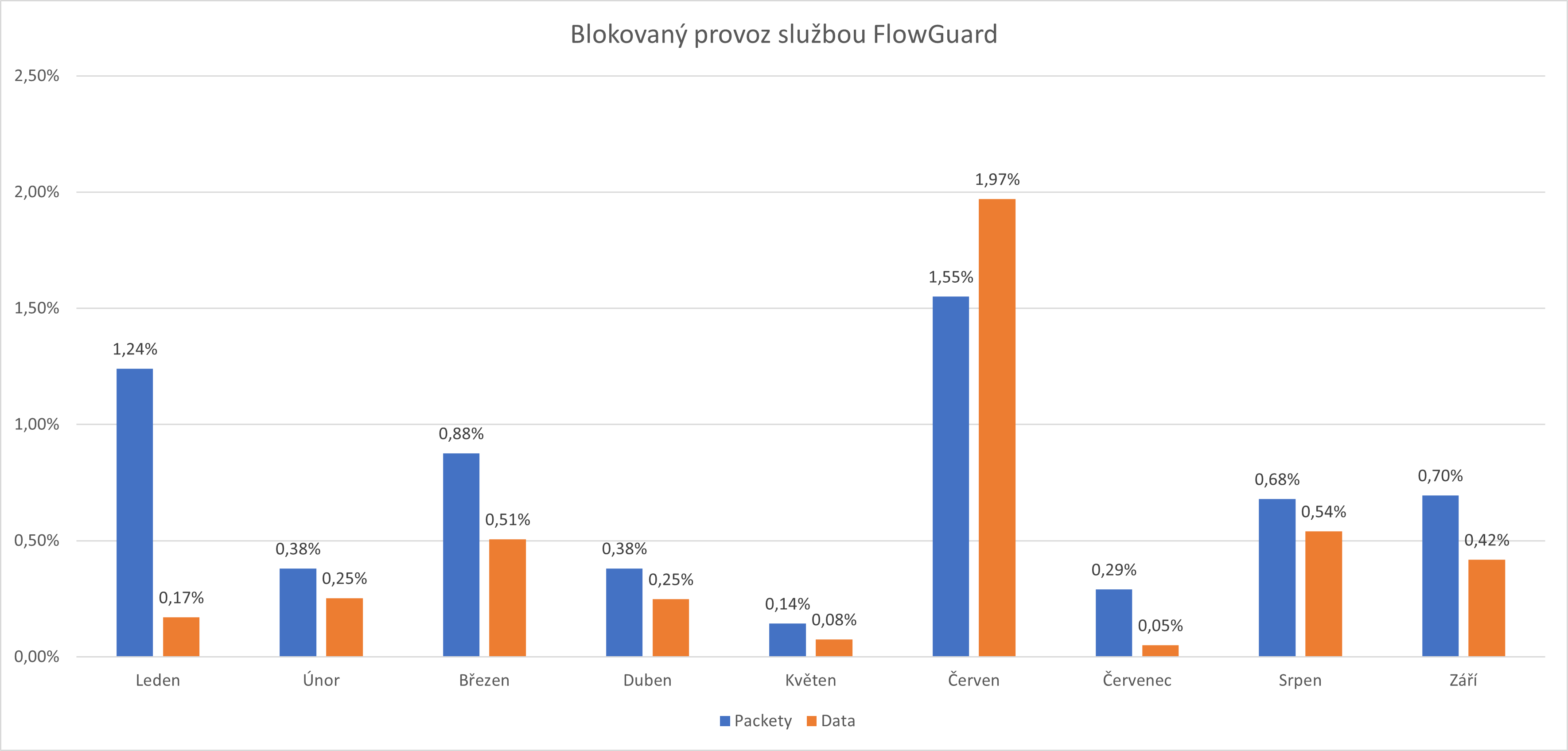 Údaje vyplývají z pravidelné měsíční analýzy statistik provozu služeb FlowGuard české společnosti ComSource, která se zaměřuje na kyberbezpečnost, síťovou infrastrukturu a datovou analytiku.