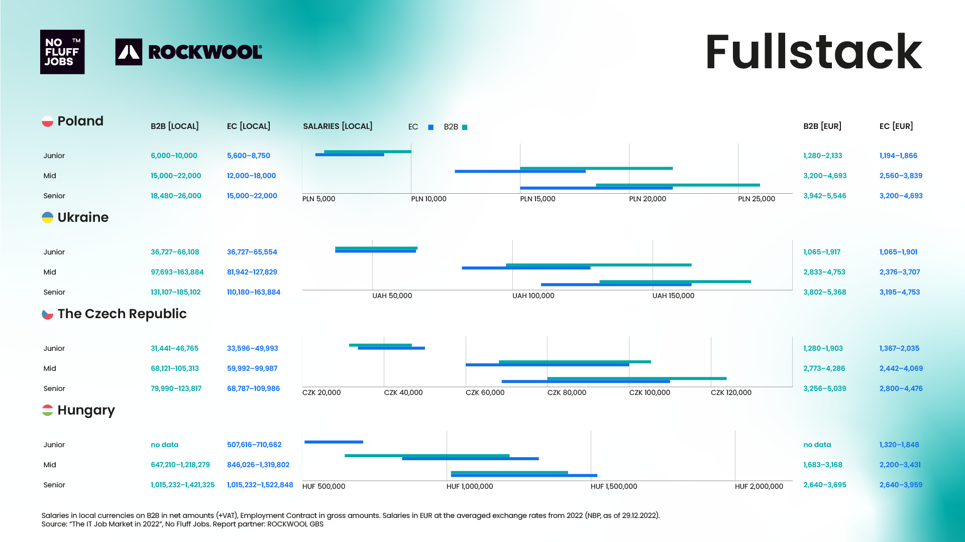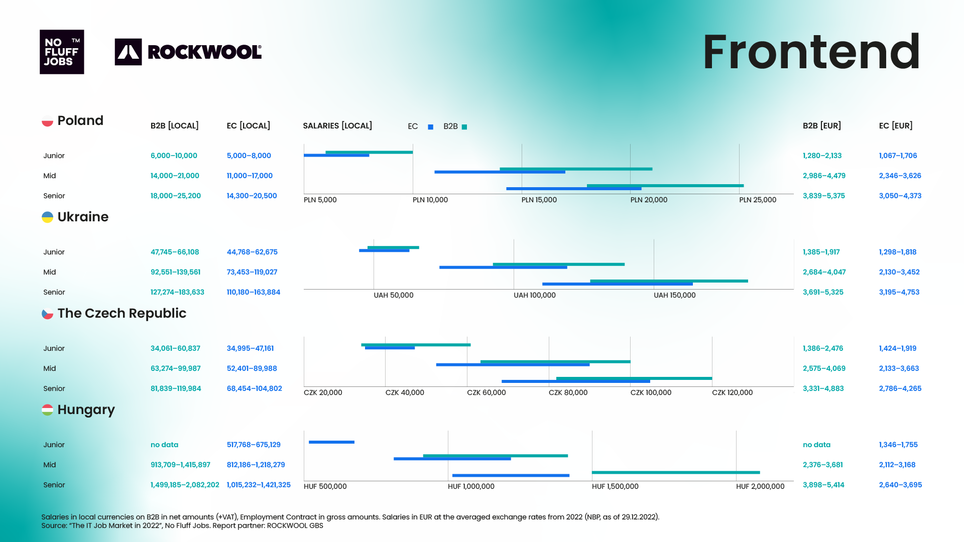 „Práce na dálku se v oblasti IT rychle stala standardem a IT odborníci se nyní méně zajímají o nabídky, které nabízejí práci pouze v kanceláři. Tento trend pozorujeme od začátku pandemie v roce 2020 a stále nabírá na síle,“ uvedl Tomek Bujok, CEO a spoluzakladatel No Fluff Jobs. „Zajímavostí je, že inzeráty s možností práce zcela na dálku nabízejí o 20-25 % vyšší mzdy než nabídky s možností pracovat hybridně nebo pouze v kanceláři. To dál motivuje kandidáty hledat inzeráty těch společností, které jim umožní pracovat na dálku.“