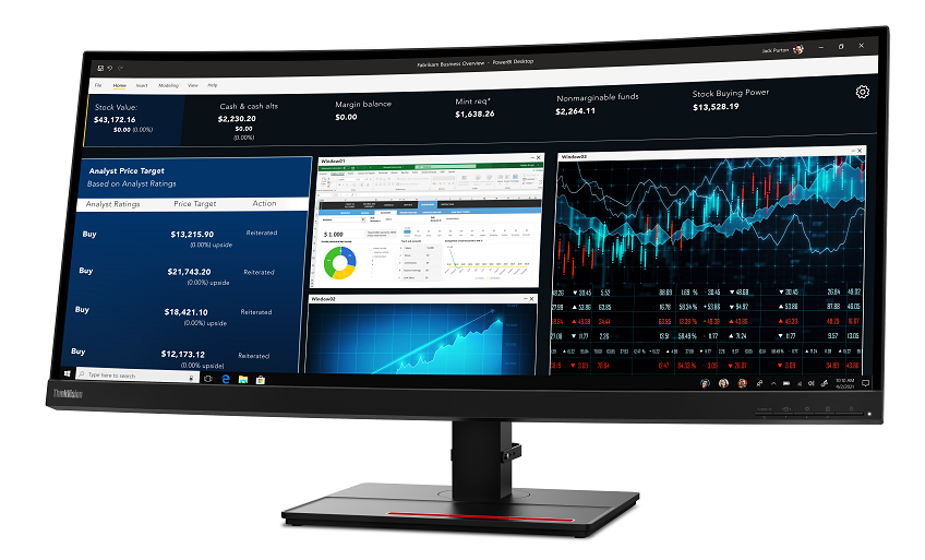 Maximalizovat svou pracovní plochu mohou uživatelé díky novému 34" ultra širokému zakřivenému (3 800R) displeji ThinkVision P34w-20, který poskytuje živý obraz s 99% sRGB barevnou kalibrací delta E <2 v rozlišení WQHD (3 440 × 1 440) a širokým pozorovacím úhlem. Panel určen pro profesionální uživatele, kteří často vykonávají více úkonů napříč vícero aplikacemi současně, přičemž poměr stran 21: 9 nabízí více prostoru pro jejich práci. Funkce Picture-in-Picture a Picture-by-Picture umožňují současné zobrazení ze dvou různých zdrojů pro vylepšenou spolupráci a patentovaná funkce eKVM šetří čas rychlým přepínáním mezi pořízeními.
