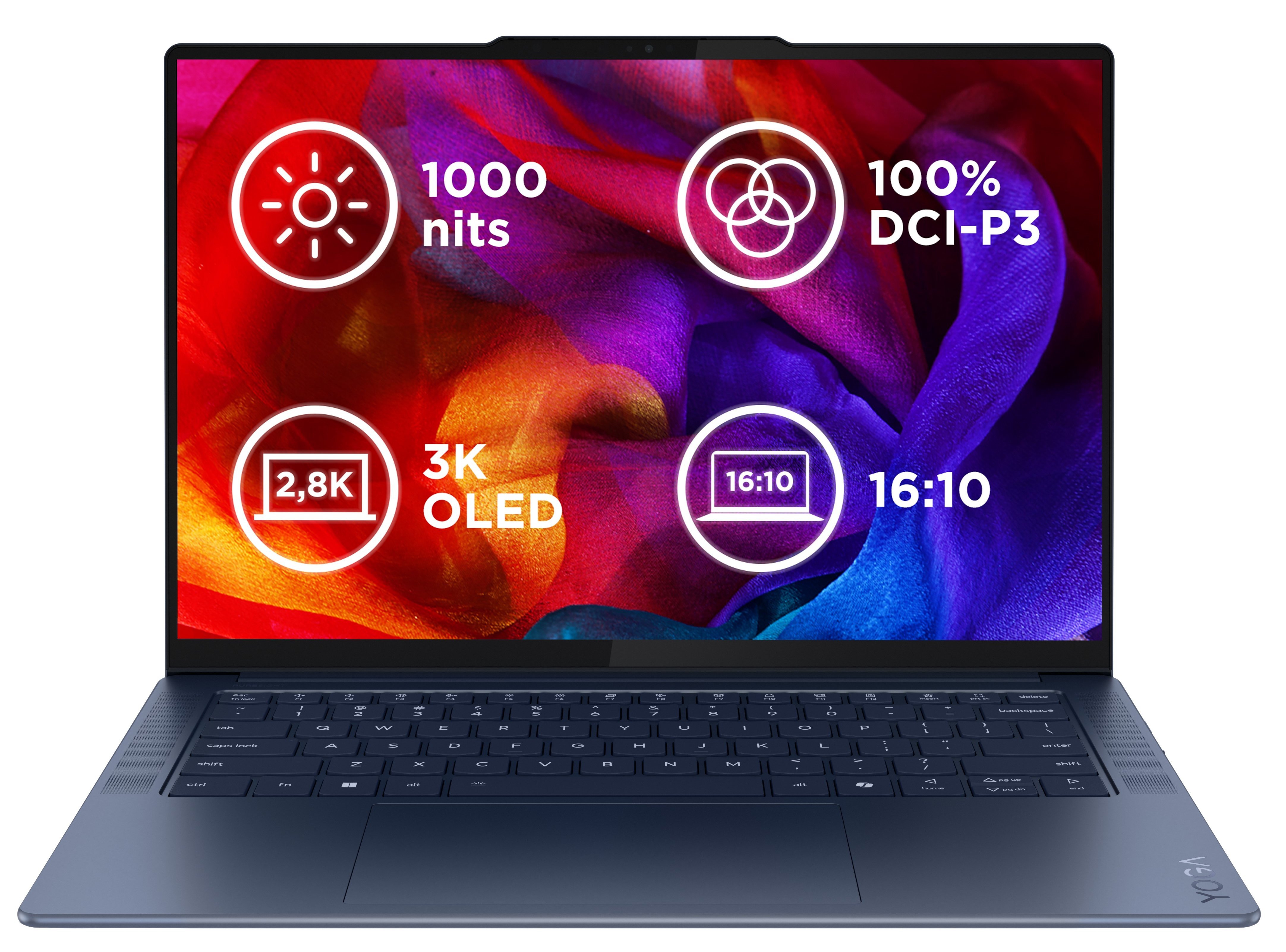 Nový notebook Lenovo Yoga Slim 7xpřináší ve svém tenkém těle s váhou začínající na 1,28 kg neomezený potenciál umělé inteligence, kterou využijí především tvůrci digitálního obsahu. Hexagon NPU v procesoru Snapdragon X Eliteposkytuje uživatelům přístup k vestavěným funkcím, jako je tvorba obrázku dle psaného požadavku, pokročilé funkce pro úpravu fotek a videí, zpětná vazba pro tvorbu a úpravu textu a mnoho dalších.Lenovo AI Core spolupracuje s procesorem Snapdragon X Elite pro chytré nastavení režimu používání a dynamickou úpravu výkonu a energetické účinnosti v závislosti na dané činnosti. Veškerý obsah uživatel konzumuje prostřednictvím 14,5" dotykového panelu PureSight OLED s poměrem stran 16:10, rozlišením 3K a frekvencí 90 Hz s maximálním jasem 1 000 nitů. Displej zároveň přináší podporu 100% sRGB a barevného gamutu DCI-P3. Nechybí ani technologie TUV Rheinland Low Blue Light.