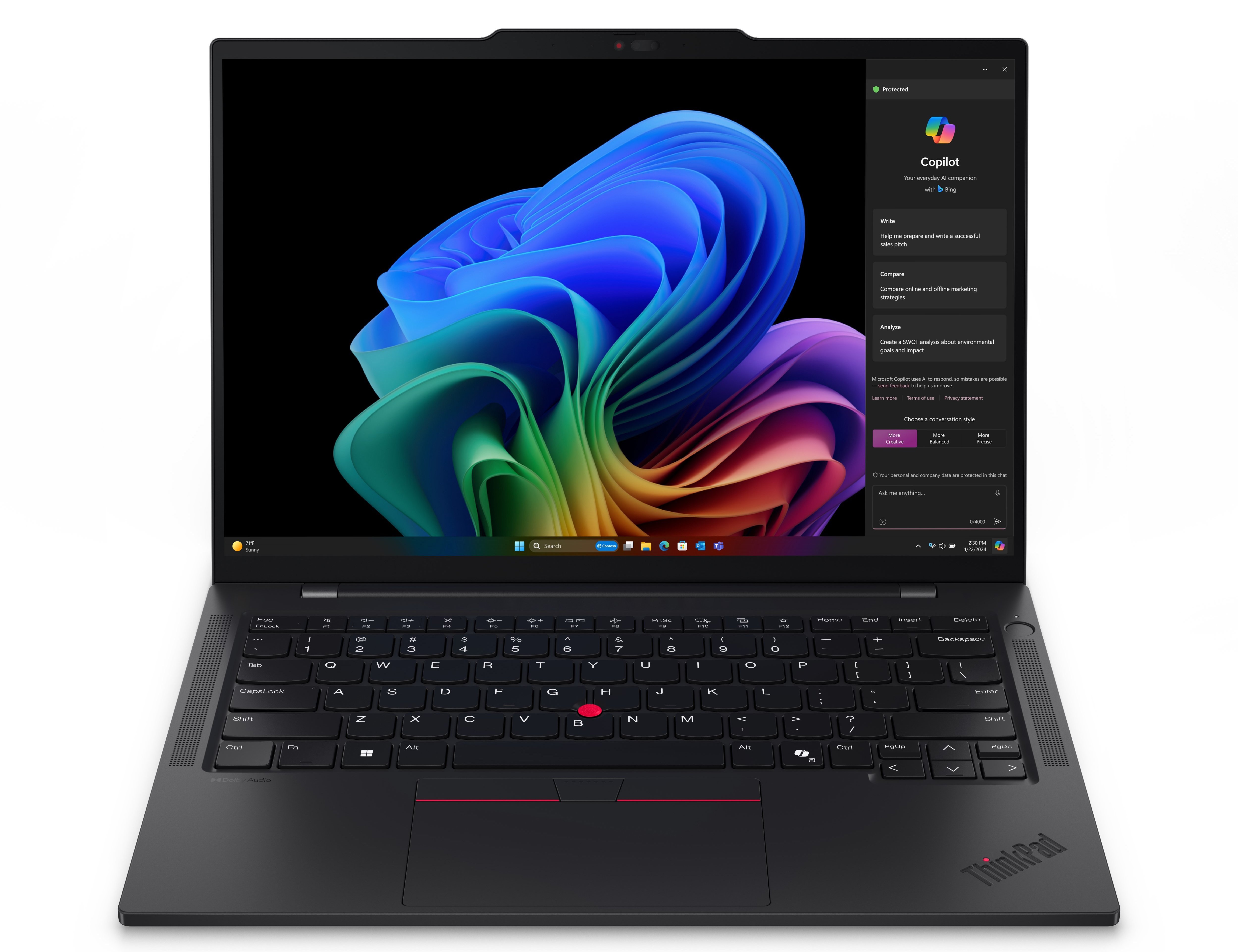 ThinkPad T14s Gen 6 je první profesionální notebook Lenovo nové generace s aplikací Copilot+ a představuje významný skok v oblasti AI počítačů pro firemní využití. Díky pokročilému procesoru Snapdragon X Elite, který je vybaven integrovanou grafikou Adreno GPU a vlastním AI enginem, přináší ThinkPad T14s Gen 6 výjimečný uživatelský zážitek. Zabudovaná 45 TOPS NPU jednotka zprostředkovává špičkové funkce umělé inteligence přímo v zařízení, což zvyšuje produktivitu a usnadňuje proces tvorby obsahu. Copilot+ pomáhá zefektivnit běžné činnosti díky síle generativní AI a strojového učení a díky bezproblémové integraci napříč aplikacemi Microsoft 365se efektivita práce podobá situaci, kdy má uživatel neustále k dispozici svého personalizovaného AI asistenta.