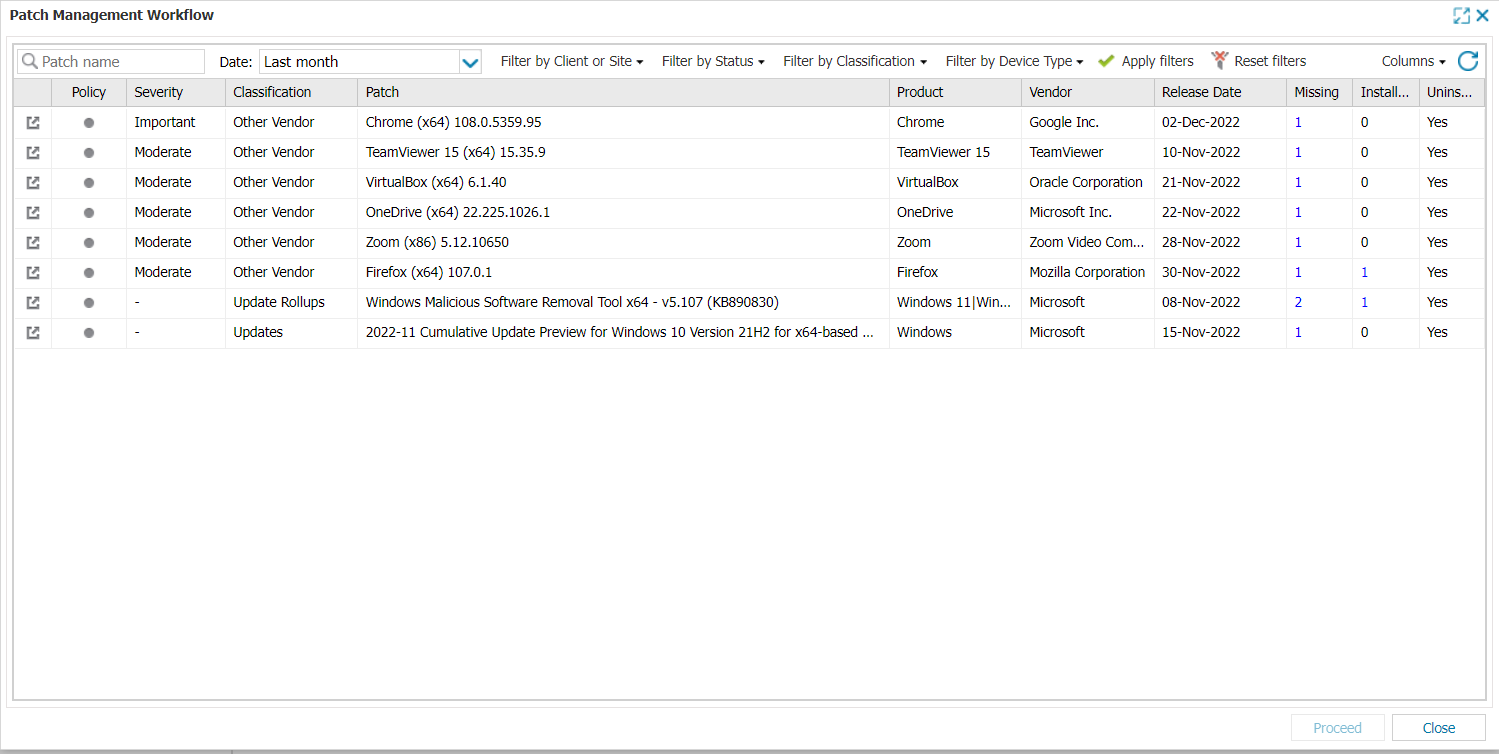 Inovované záplatovací jádro v N-sight RMM reaguje na nový způsob vydávání aktualizací Microsoft, který primárně využívá klasifikaci záplat bez určení jejich závažnosti. N-sight RMM nyní umožňuje automaticky aplikovat záplaty dle všech klasifikačních kategorií Microsoftu. Další vylepšení podporuje funkci automatického schvalování aktualizací u stovky nejvyužívanějších aplikací třetích stran, které jsou detekovány platformou N-sight, včetně například Adobe Acrobat či Reader. A nakonec nové jádro zrychluje a zjednodušuje vyhledávání záplat na základě klasifikačních kategorií.