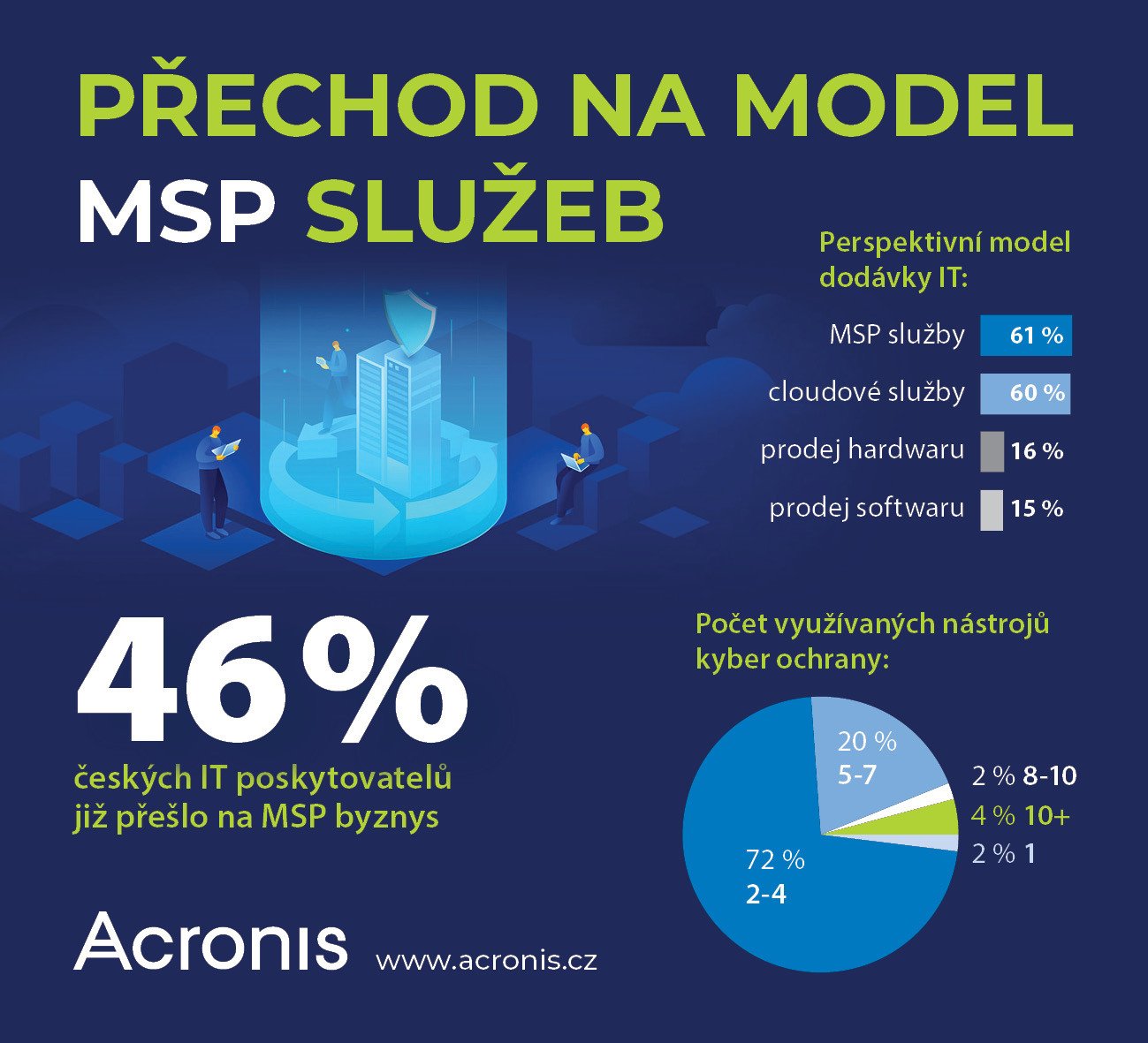 MSP byznys se stává nejperspektivnější oblastí, prodej hardwaru a softwaru se naopak propadá. Podle lokálního průzkumu společnosti Acronis provedeného v říjnu 2021 mezi českými IT poskytovateli již 46 % z nich poskytuje nějaké MSP služby a další přechod na MSP plánují.