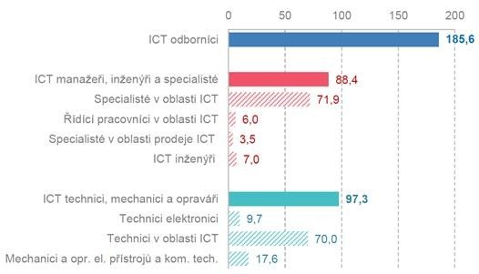 V Česku vloni působilo 186 tisíc lidí, kteří se profesně věnují informačním a komunikačním technologiím. Z toho 88 tisíc byli manažeři, inženýři a specialisté, 97 tisíc pak technici, mechanici a opraváři.