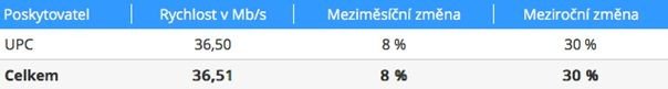 Kabelové připojení meziměsíčně zaznamenává také zrychlení, a to o 8 %. Průměrná rychlost byla v březnu 2017 36,5 Mb/s.