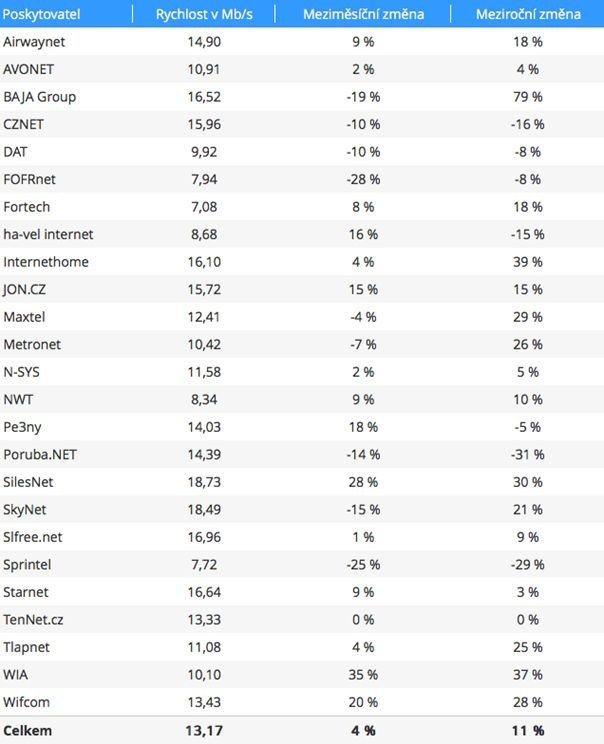 V březnu 2017 zrychloval DSL internet, kabelové připojení, optika i Wi-Fi připojení.