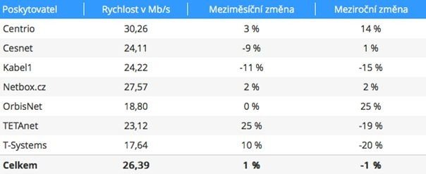 U optického internetu došlo také ke zrychlení. Průměrná rychlost internetu předtavovala 26,4 Mb/s, což je o procento více než v únoru.