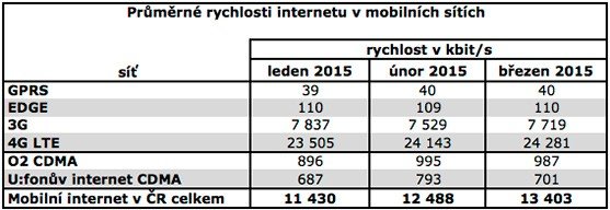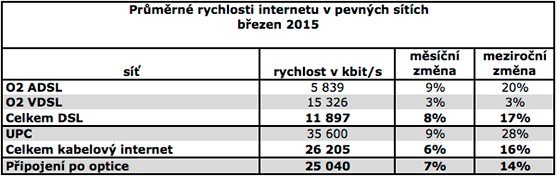 V březnu 2015 opět stoupla průměrná rychlost mobilního internetu. Nejrychlejší mobilní internet měl operátor O2. Pozitivně se vyvíjela rychlost internetu i u pevného připojení. Oproti minulému měsíci zrychlil DSL internet o 8 %, Wi-Fi o 7 % a kabelový o 6 %.