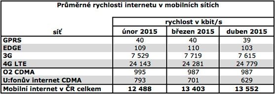 V dubnu se průměrná rychlost internetu zvýšila pouze u mobilního připojení, kde měl opět nejrychlejší mobilní internet operátor O2. Rychlost pevného internetu po několika měsících klesla.