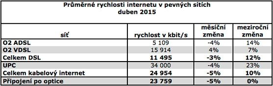Naměřené rychlosti internetu na DSL.cz za duben 2015