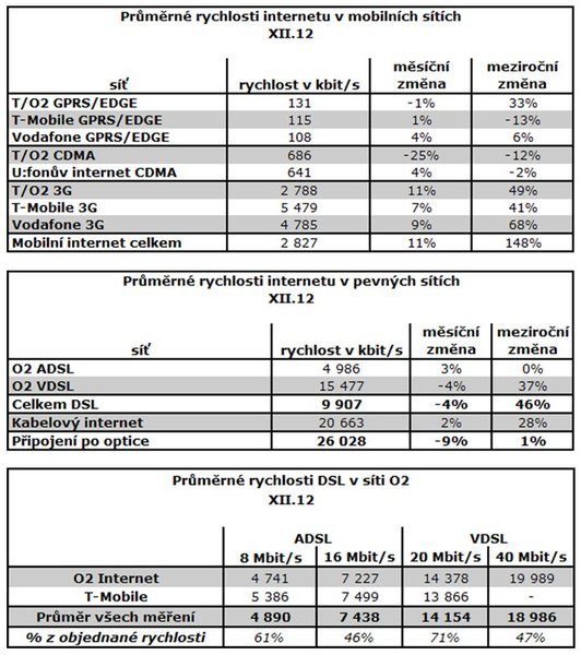 Zvyšování rekordních čísel 3G sítí u všech mobilních operátorů se nezastavilo ani poslední měsíc roku 2012. Průměrná rychlost mobilního internetu v České republice se tak přiblížila 3 Mbit/s. Nejrychlejší 3G síť má stále T-Mobile. Také kabelový internet dosáhl v prosinci vysokých rychlostí.