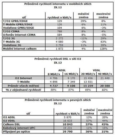 Průměrná rychlost mobilního připojení (všichni čtyři mobilní operátoři) v září byla 1,8 Mbit/s, což je téměř stejně jako v srpnu. Meziročně se rychlost zvýšila o 128 %. Nejrychleji data „sviští“ u T-Mobile a to konkrétně 4 Mbit/s.