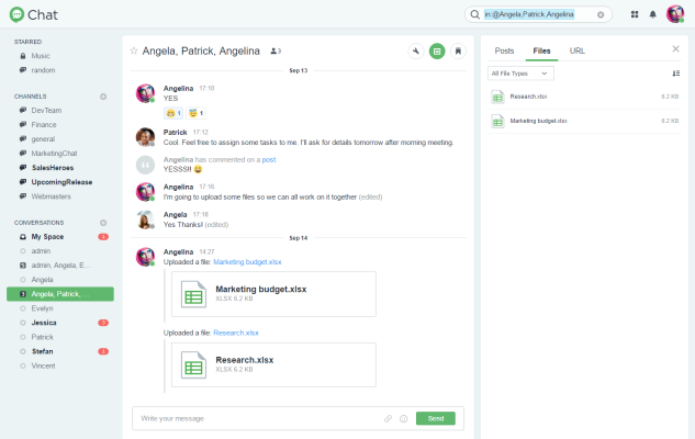 - Chat: Příspěvky, zmínky a kanály umožňují komunikaci v reálném čase a usnadňují spolupráci. Nástroje pro správu dat shromažďují všechny informace na jednom místě a šifrování soukromých kanálů chrání důvěrná data před vnitřními i vnějšími hrozbami. Pro systémy iOS a Android je dostupná mobilní verze aplikace.
