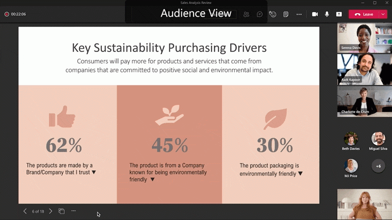 Efektivní hybridní schůzky vyžadují, aby každý z účastníků mohl rovnocenně prezentovat a zároveň prezentaci sledovat. Nové funkce PowerPoint Live pomohou vytvořit sdílený prostor pro spolupráci s využitím příspěvků od všech účastníků schůzky. Překlad snímku umožní zobrazit si prezentaci ve zvoleném jazyce pro každého účastníka individuálně, aniž by to ovlivnilo zbytek účastníků. Nové používání rukopisu vám umožní přidávat do prezentace v PowerPointu v jejím průběhu poznámky. S pomocí laserového ukazovátka také můžete nasměrovat pozornost na klíčové body.