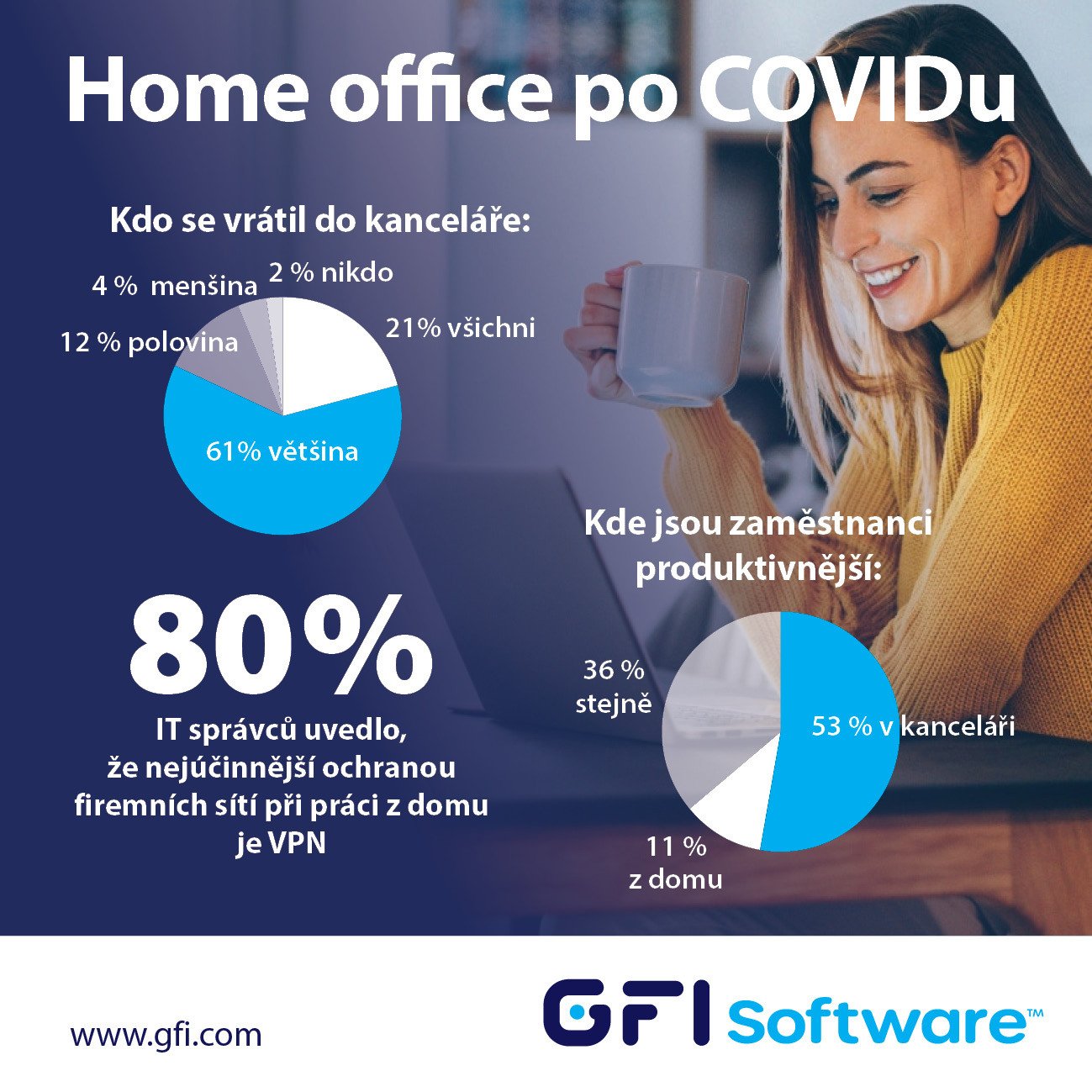 Podle průzkumu společnosti GFI Software provedeného mezi partnery v ČR a SR zůstala i přes odeznění pandemie nezanedbatelná část pracovníků na home officu. Podle 80 % dotázaných lokálních IT správců je nejúčinnější ochranou firemní sítě při práci z domova virtuální privátní síť (VPN).