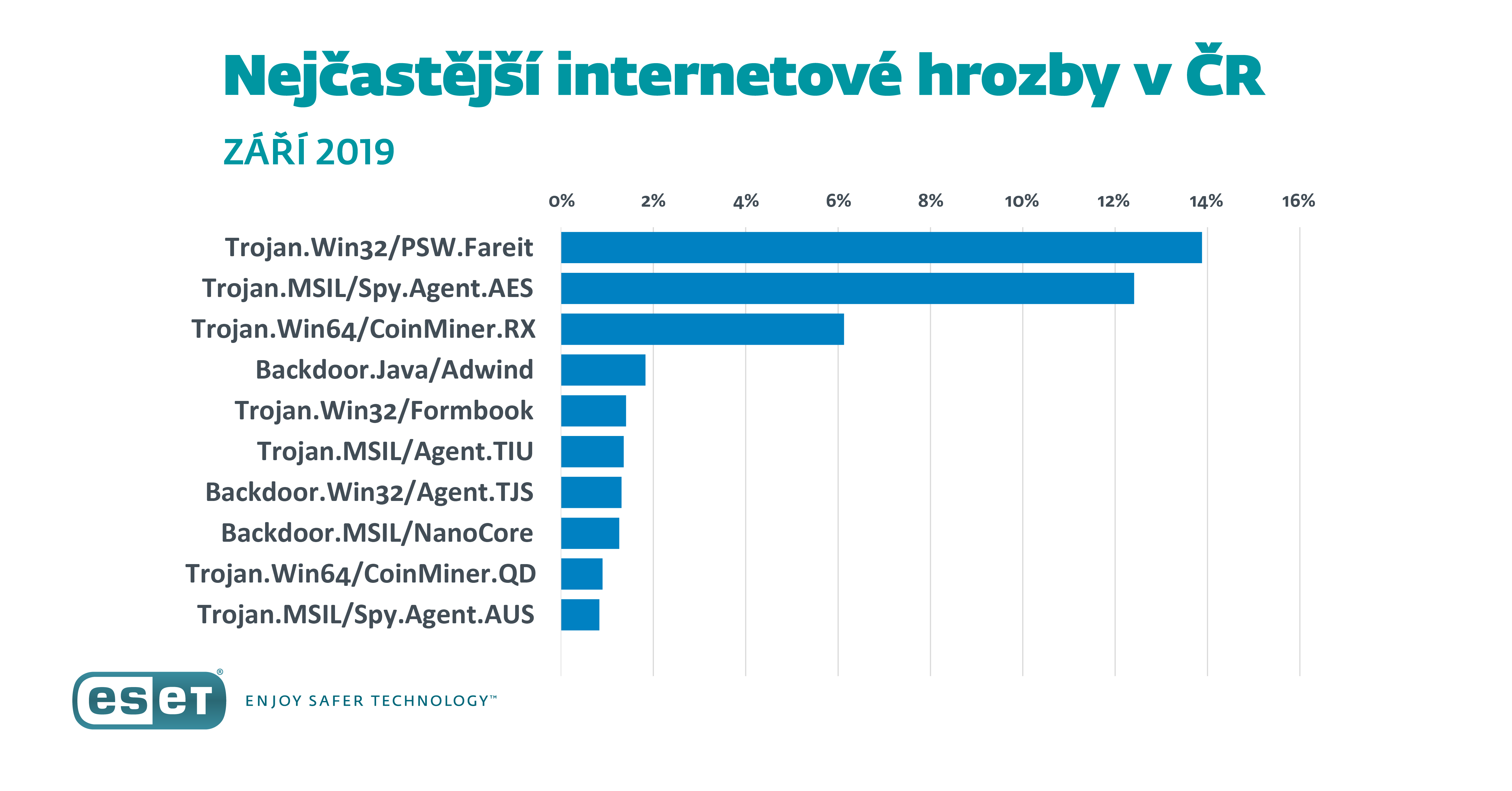 Nejčastější kybernetické hrozby v České republice za září 2019: