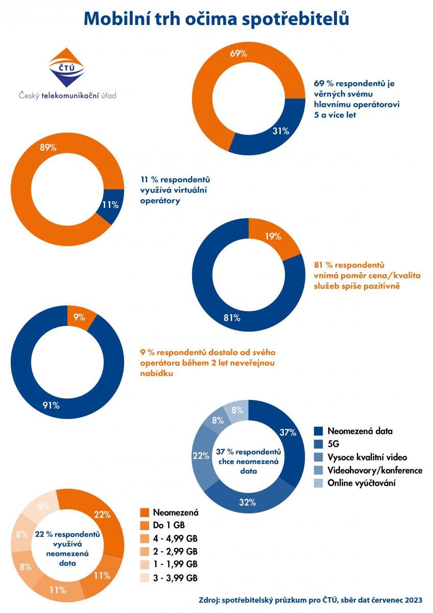 Český telekomunikační úřad se v průzkumu podrobněji zaměřil na mobilní trh. Mimo jiné jsme se tak dozvěděli, že služby virtuálních operátorů využívá téměř 11 % respondentů nebo, že 39 % respondentů vynakládá na měsíční provoz svého soukromého mobilu (soukromé SIM karty) 200 až 499 Kč. Jaké další skutečnosti průzkum odhalil?