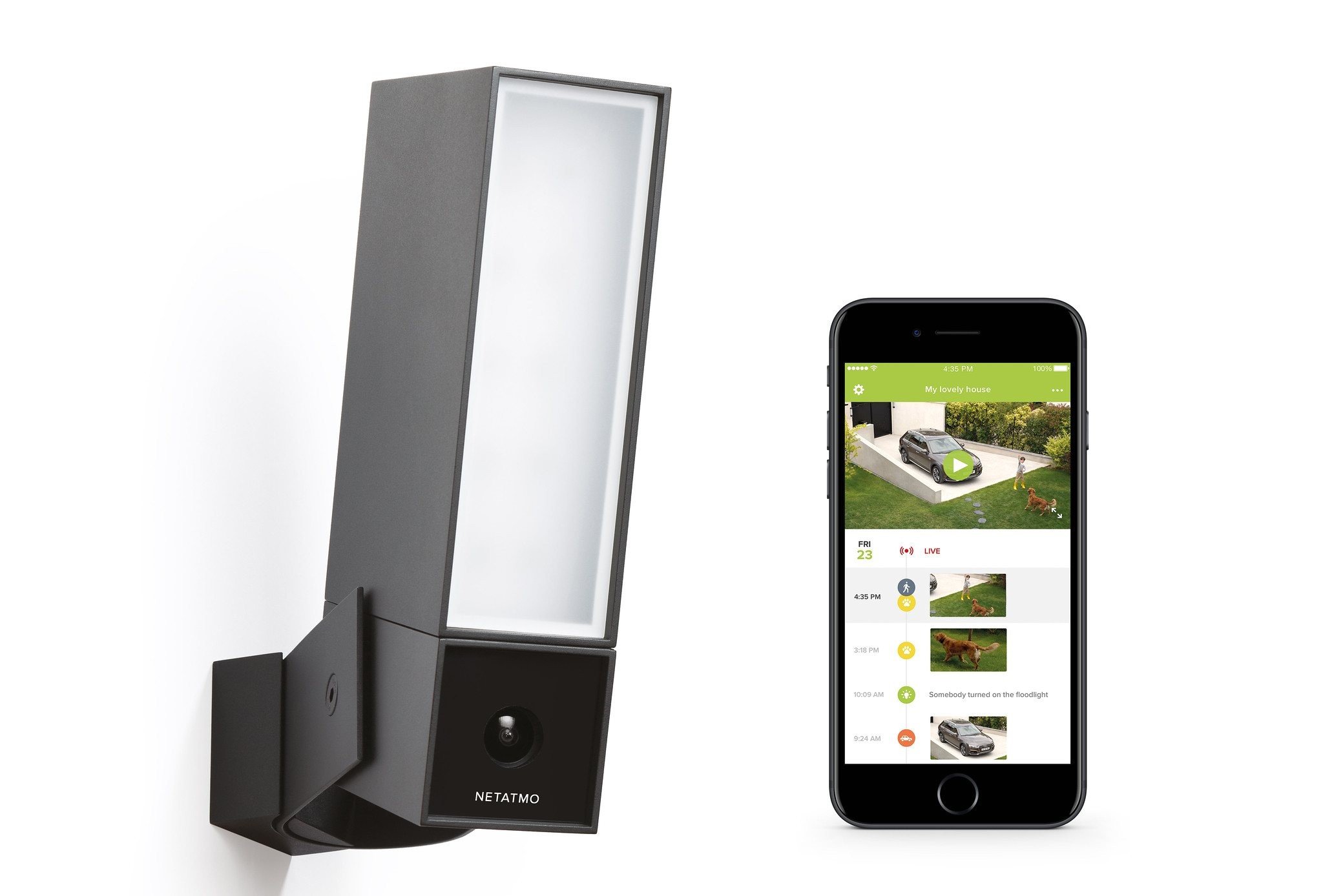 Kamera pracuje v rozlišení Full HD (1 080p) a objektivem se záběrem 100 stupňů a detekčním polem 20 metrů. Dozor i v noci zajistí infračervené vidění v kombinaci s osvětlovacím systémem (dojde-li k poplachu, osvětlení se rozsvítí a pomůže k zastrašení zloděje). Osvětlení lze nastavovat v aplikaci Netatmo Security, kde si může uživatel například zvolit, jestli se osvětlení zapne automaticky při rozpoznání náhodného pohybu, čímž případně zastraší cizí osobu, nebo bude pouze osvětlovat vstup domu při příchodu členů domácnosti a ohlášených návštěv.
