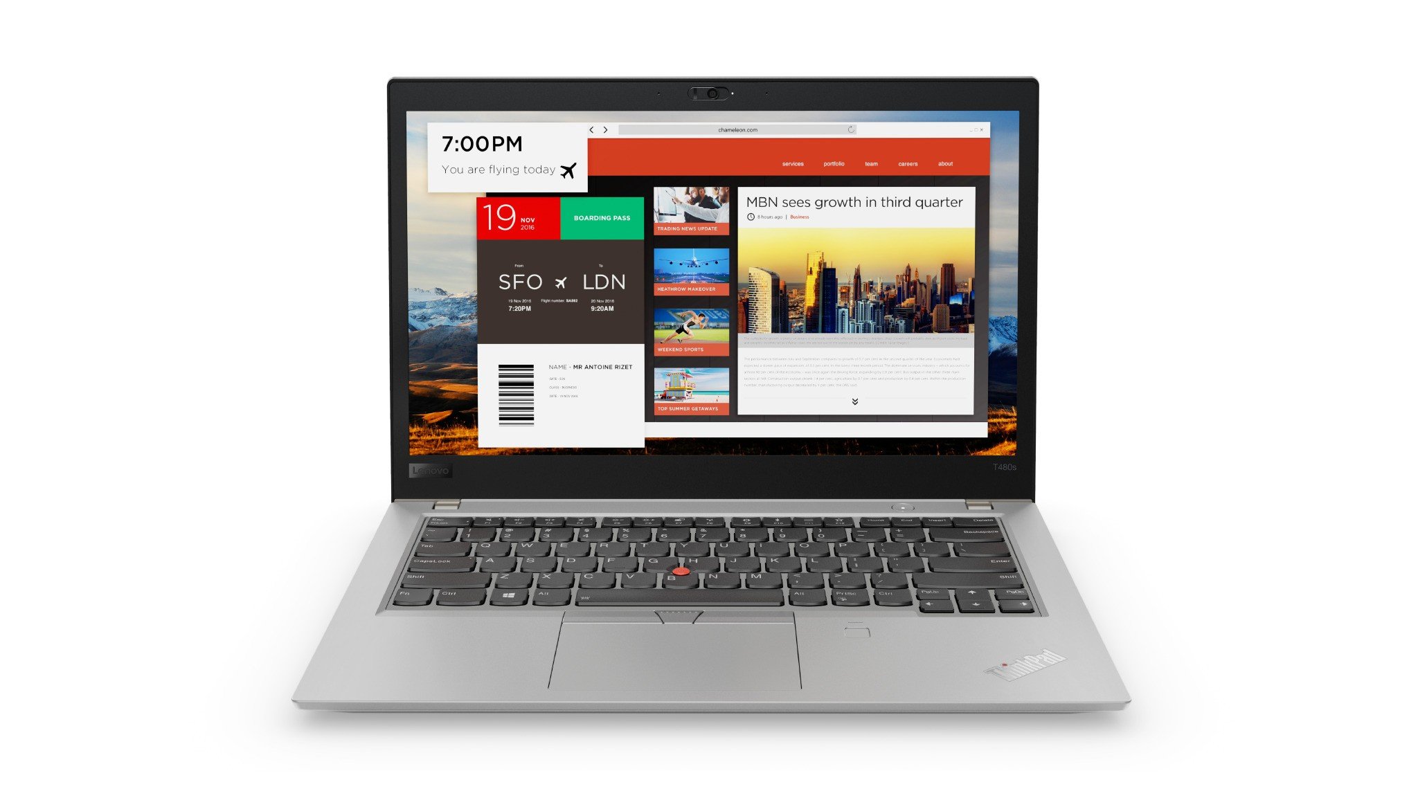 Odlehčený model T480s přichází se zcela novým tenčím a lehčím designem, procesory Intel Core 8. generace, výdrží až 13,5 hodiny, Windows Hello se čtečkou otisků prstů a infračervenou kamerou, NFC, až 1TB PCIe SSD, až 24GB RAM a integrovaným bezdrátovým LTE modemem.